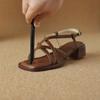 Fundo macio não cansado pés ins simples cinta fina sandálias de estudante verão feminino novo couro completo grosso salto médio sandálias romanas