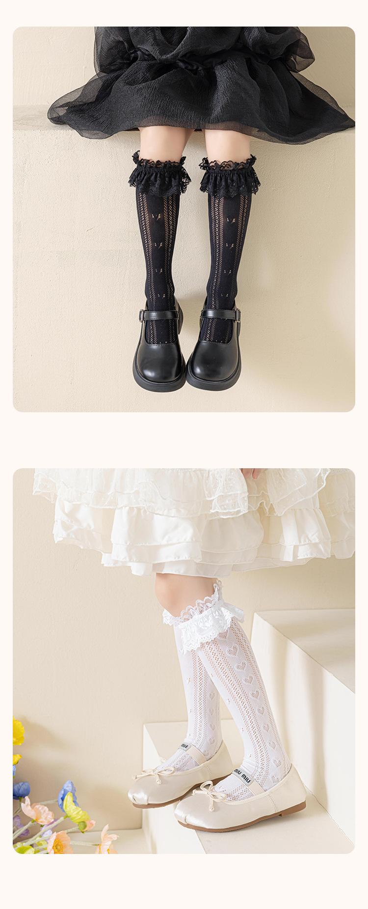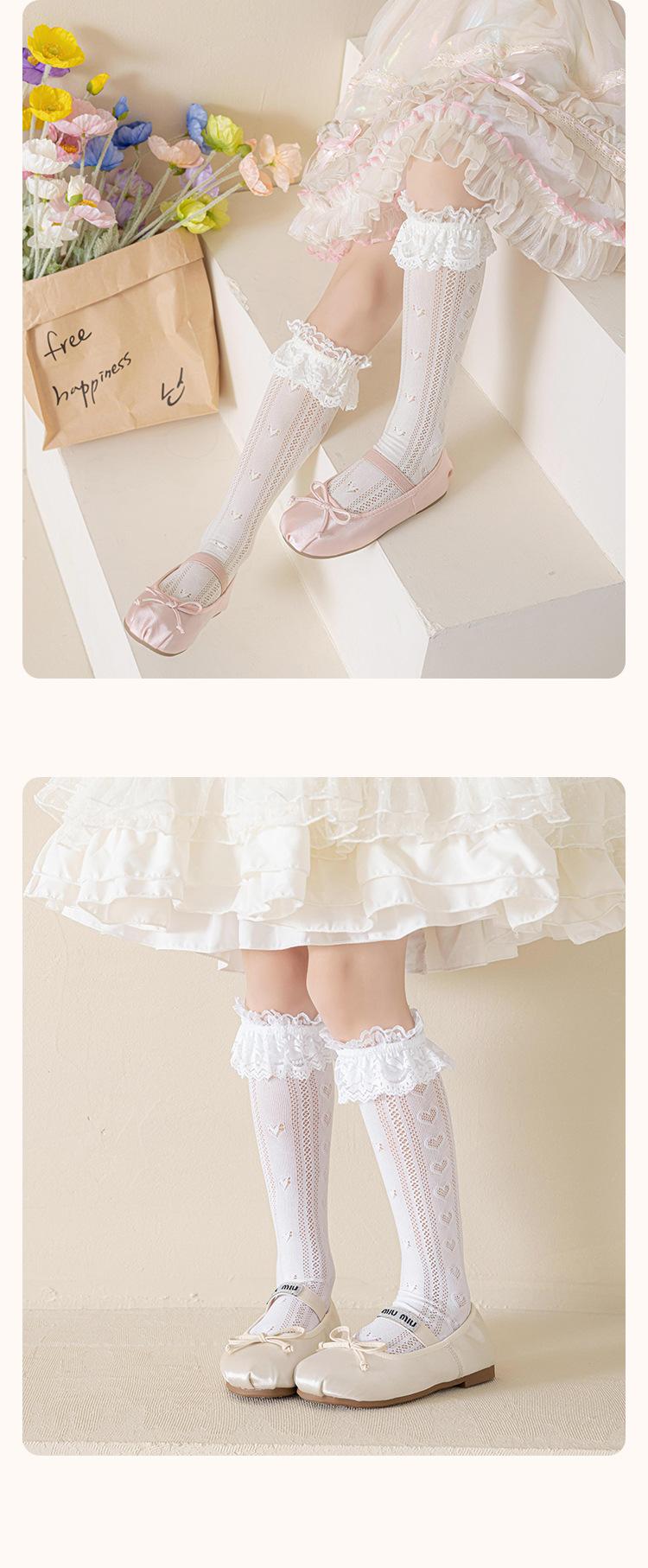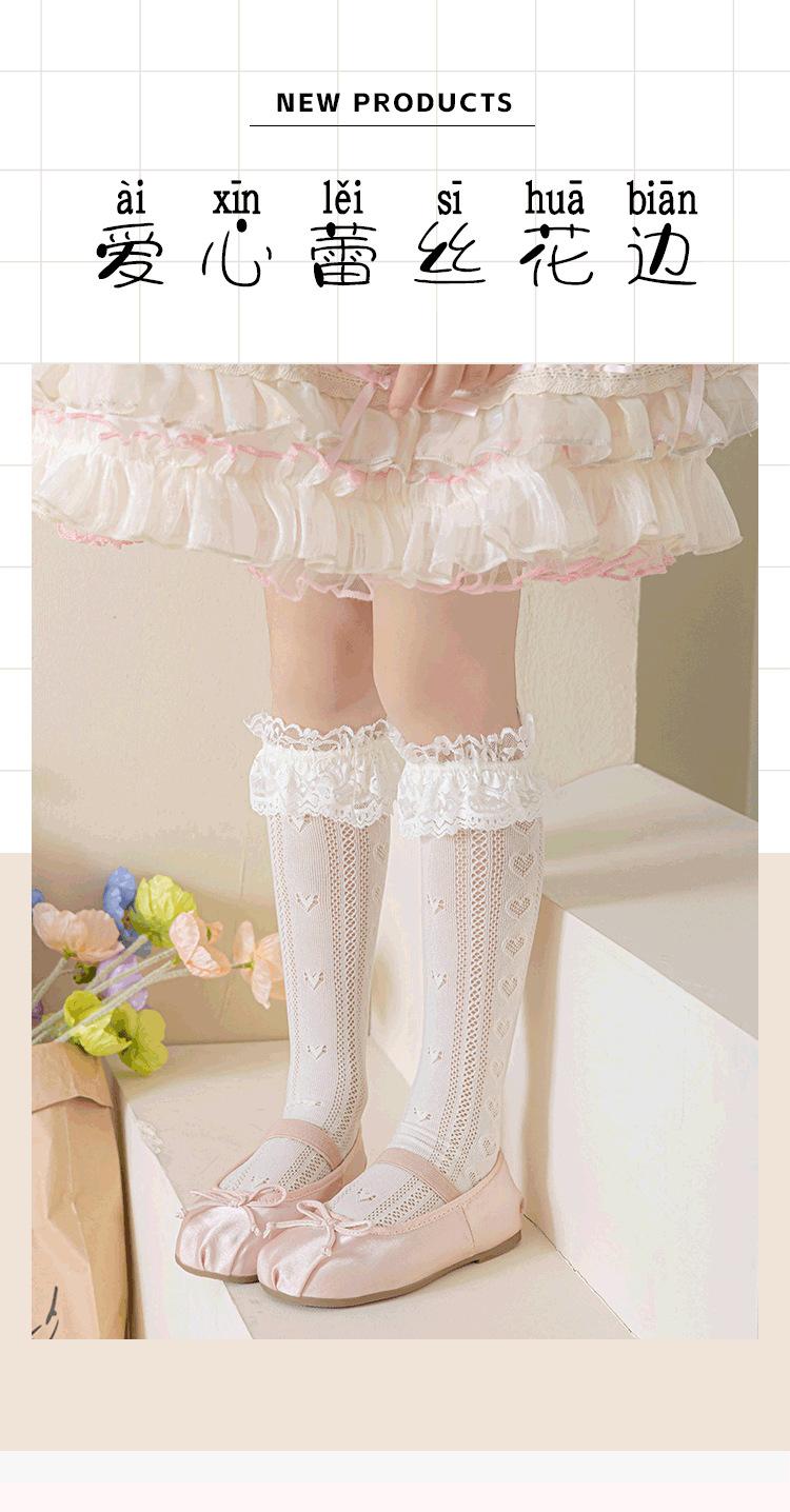 Verão meninas finas meias crianças amor Lolita rendas princesa meias bezerro malha menina bebê tubo longo