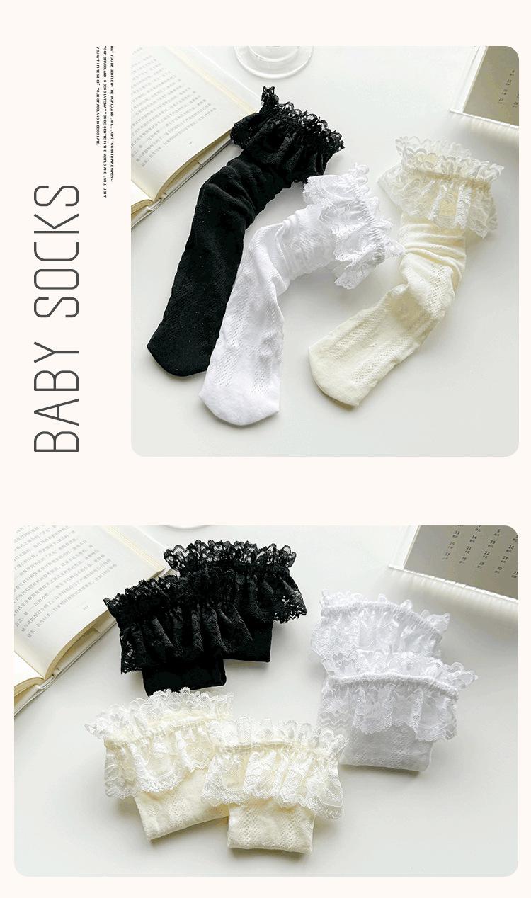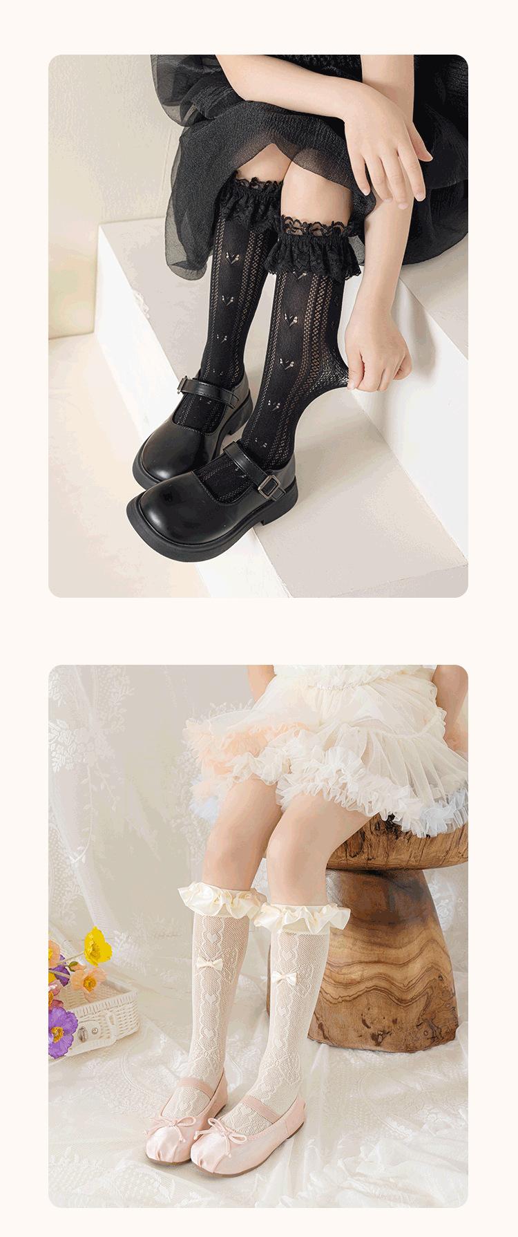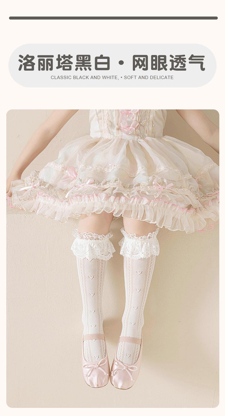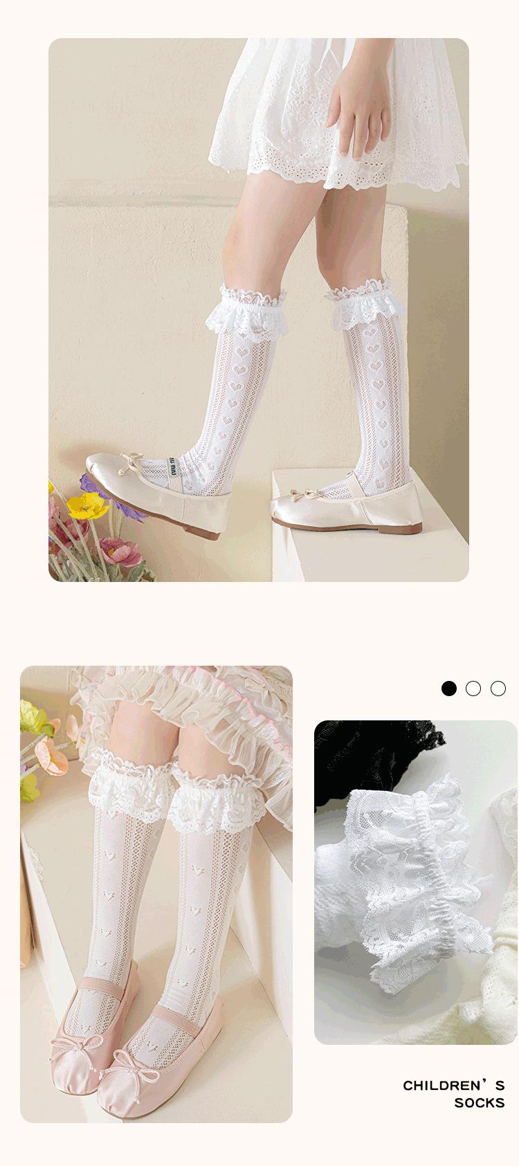 Verão meninas finas meias crianças amor Lolita rendas princesa meias bezerro malha menina bebê tubo longo