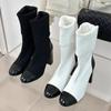 Comércio exterior transfronteiriço plus size botas longas acima do joelho para mulheres 2023 outono europeu e americano novo plus size bico redondo voando meias tecidas botas