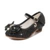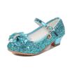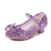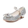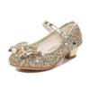 Sapatos de Couro para Meninas Salto Alto 2025 Primavera Laço de Strass Modelo Pequena Princesa Cristal Sapatilhas Lantejoulas Sapatos Infantis para Mulheres
