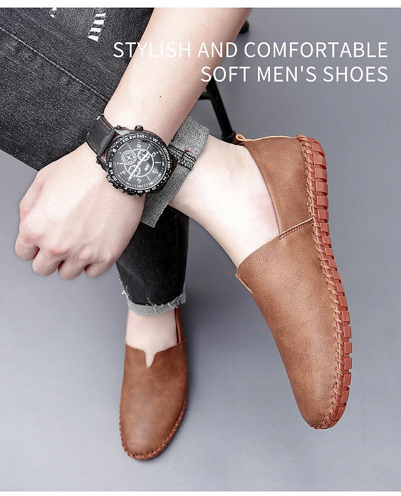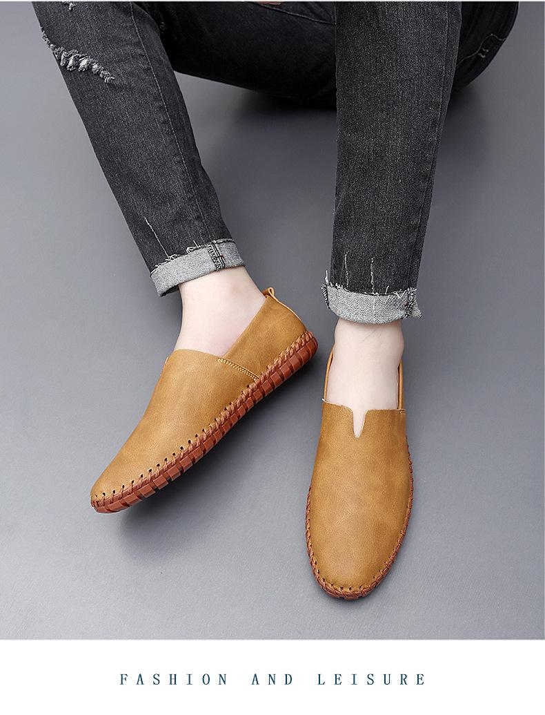 Sapatos masculinos de couro respirável 2023 novos sapatos casuais masculinos outono salto raso cor sólida sapatos masculinos transfronteiriços Sapatos masculinos de ervilhas masculinos