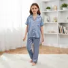 Primavera e Verão Crianças Pijamas de Seda Calças de manga curta Terno Médio e Grande Roupas para Casa Infantil Cardigan Meninos Cor Sólida Roupas para Casa