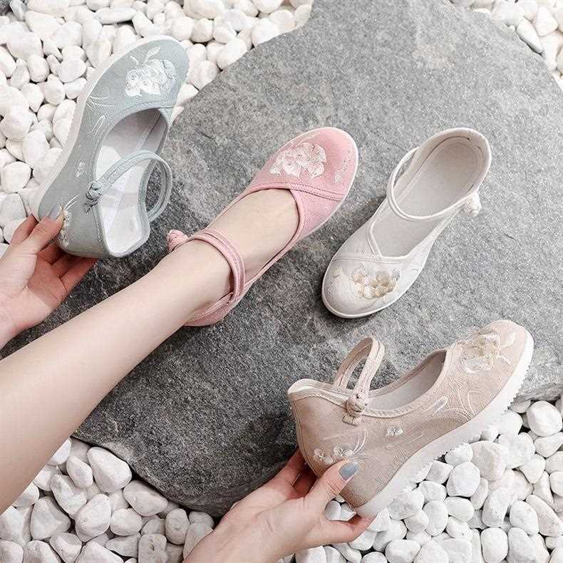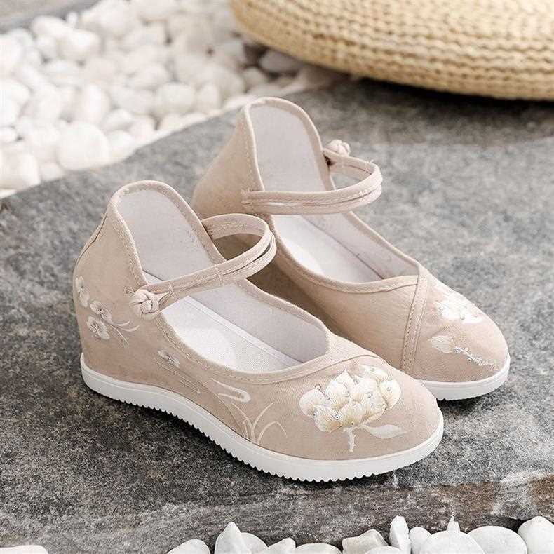 Novo velho Pequim sapatos de pano traje antigo das mulheres Hanfu estilo antigo salto escondido estilo étnico plataforma de dança cunha sapatos bordados