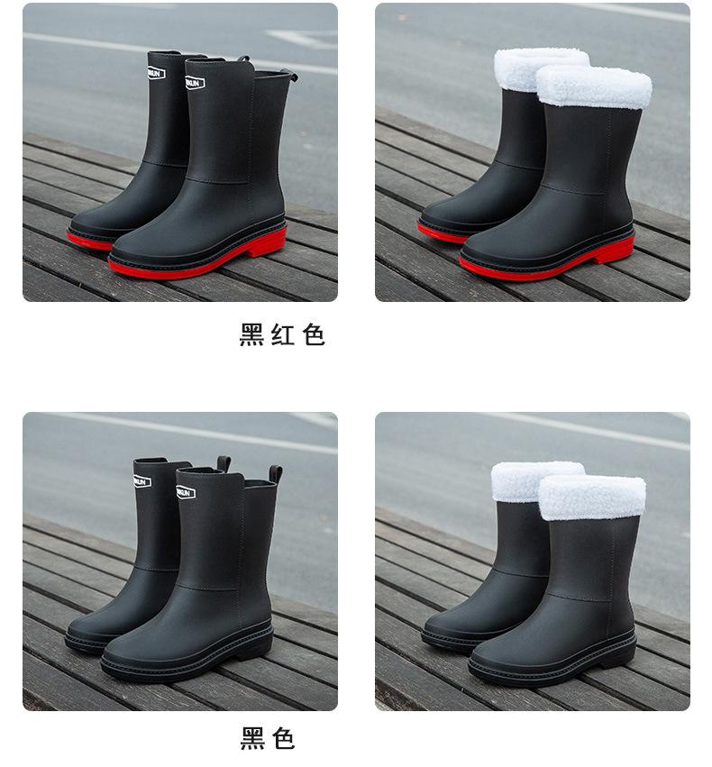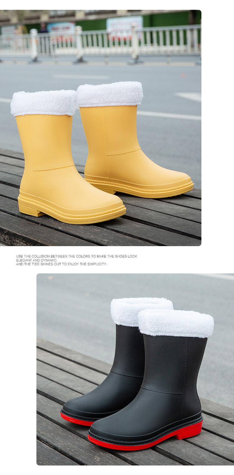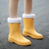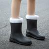 Botas de chuva femininas transfronteiriças de fundo macio confortável para todos os jogos sapatos de borracha para adultos de algodão quente à prova d'água antiderrapante botas de chuva de panturrilha