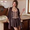 Camisola Sexy Retrô Francesa de Suspensório para Mulheres, Roupas de Casa de Veludo Dourado Outono e Inverno, Pijama Tentação com Fenda e Costas Lindas
