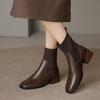 Meias botas elásticas botas magras de couro genuíno retro feminino outono e inverno salto grosso salto médio de malha fina tubo médio não acima do joelho botas