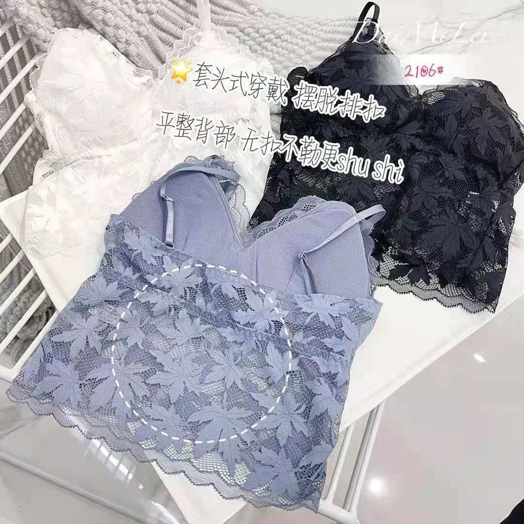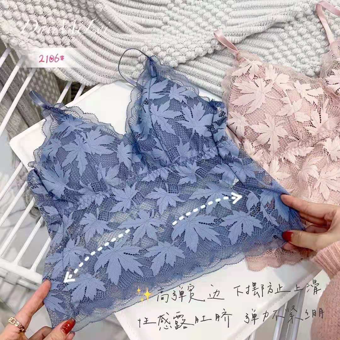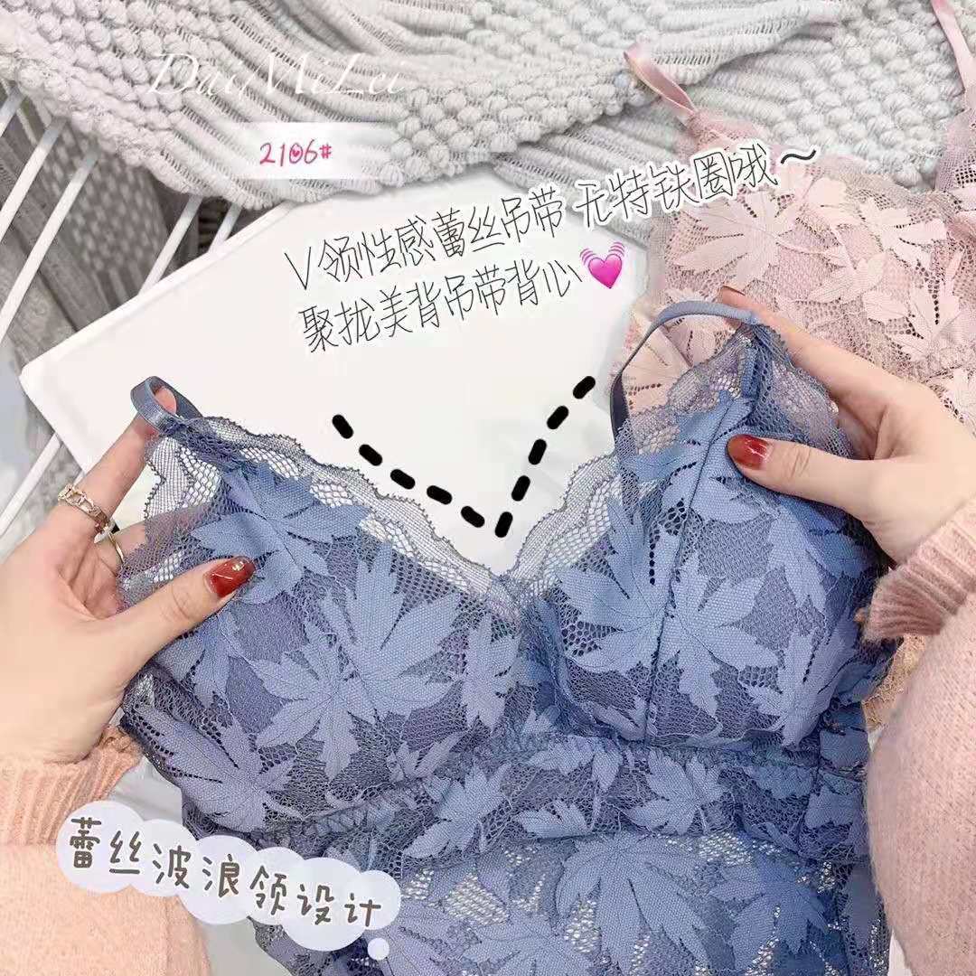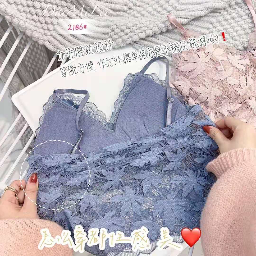 Nova folha de bordo francesa camisola de renda das mulheres sem anel de aço reunidos para envolver a pele do peito sexy de volta fornecimento direto da fábrica
