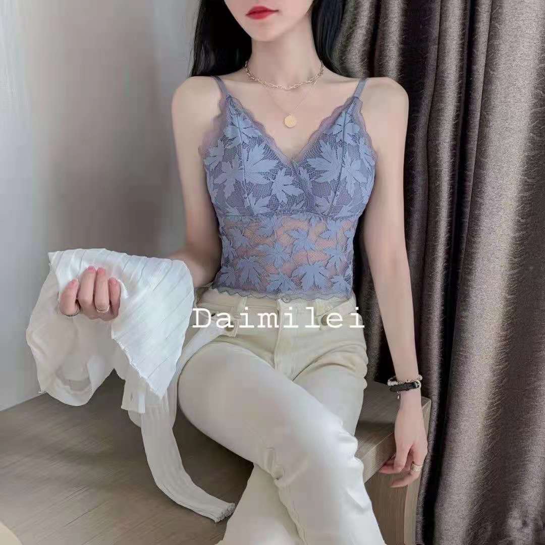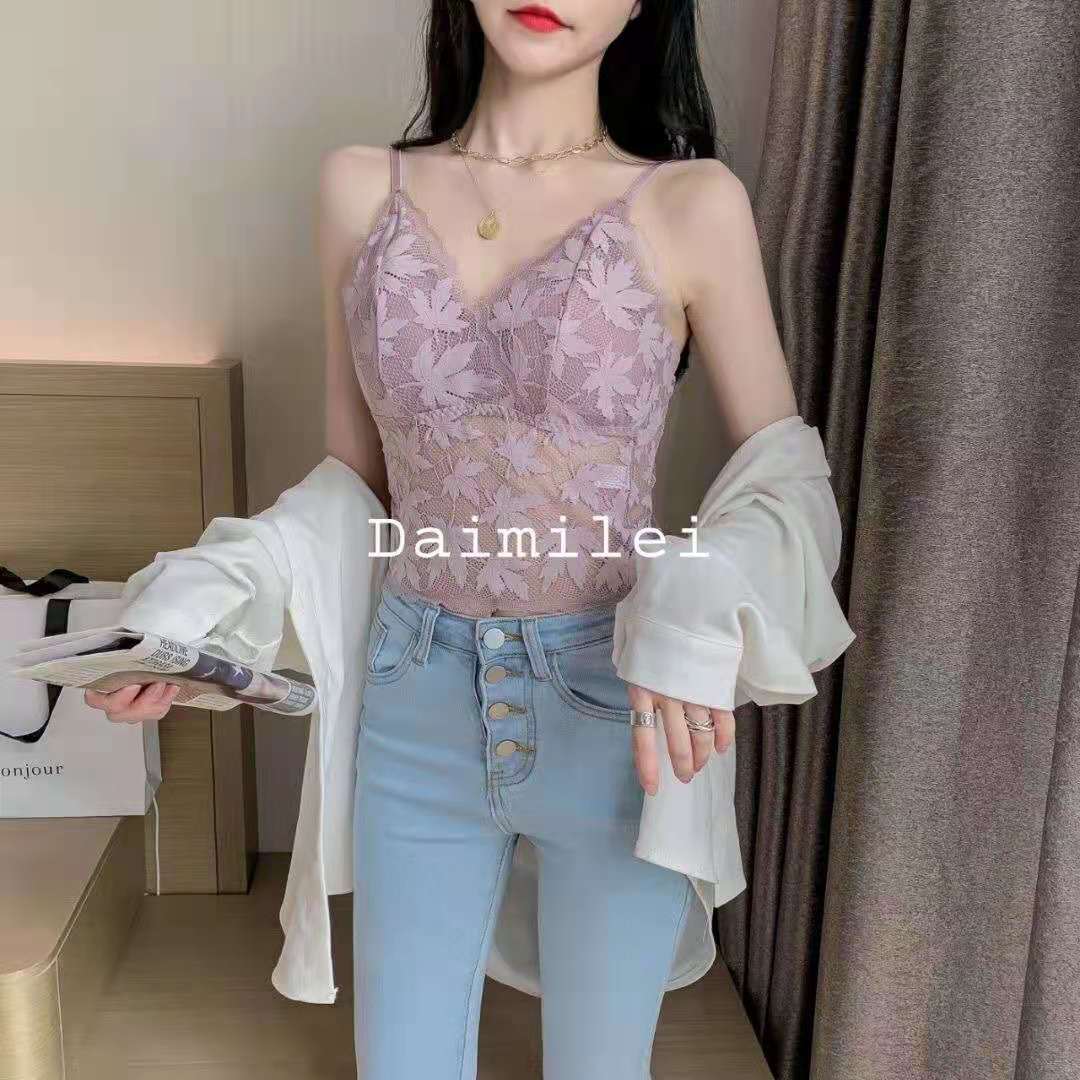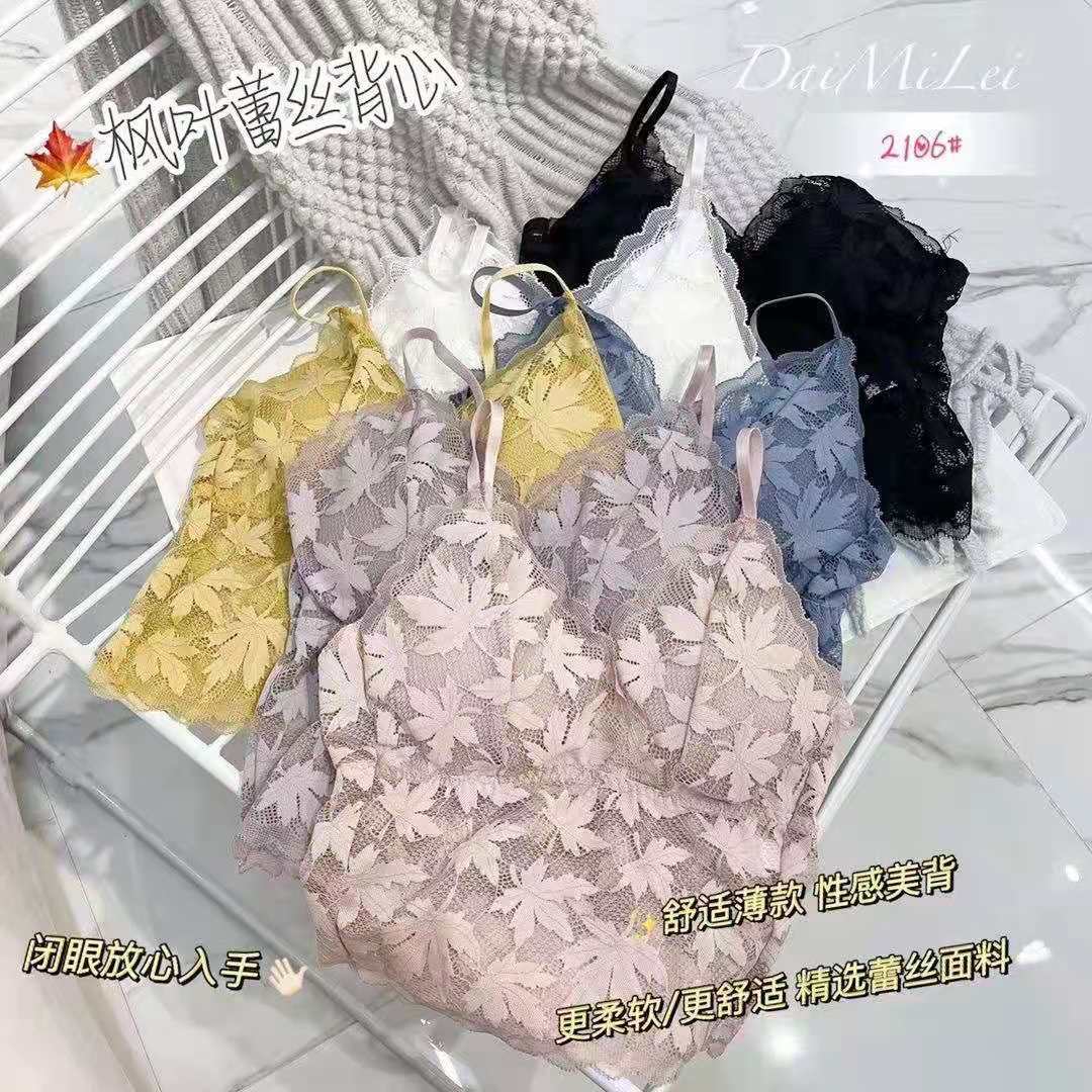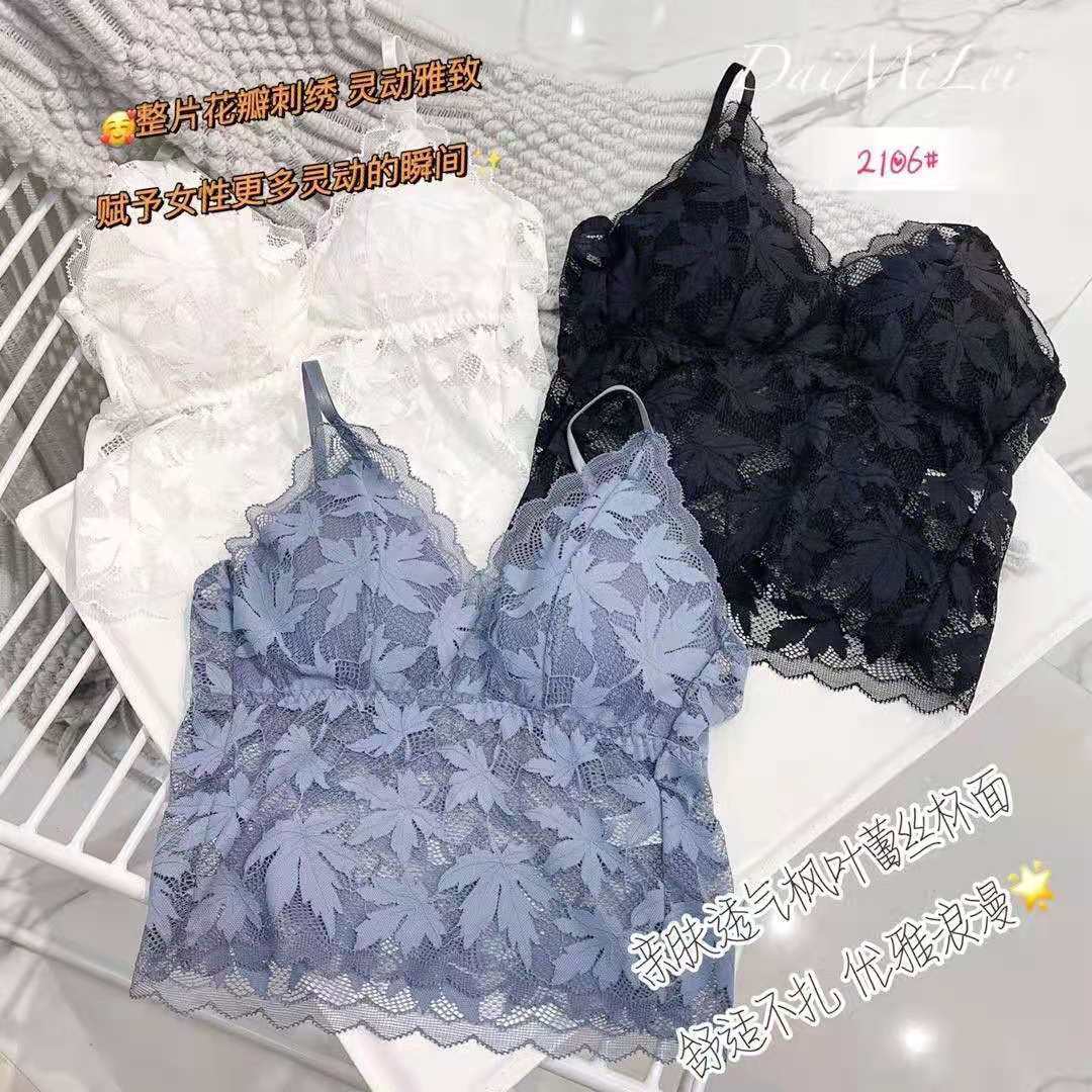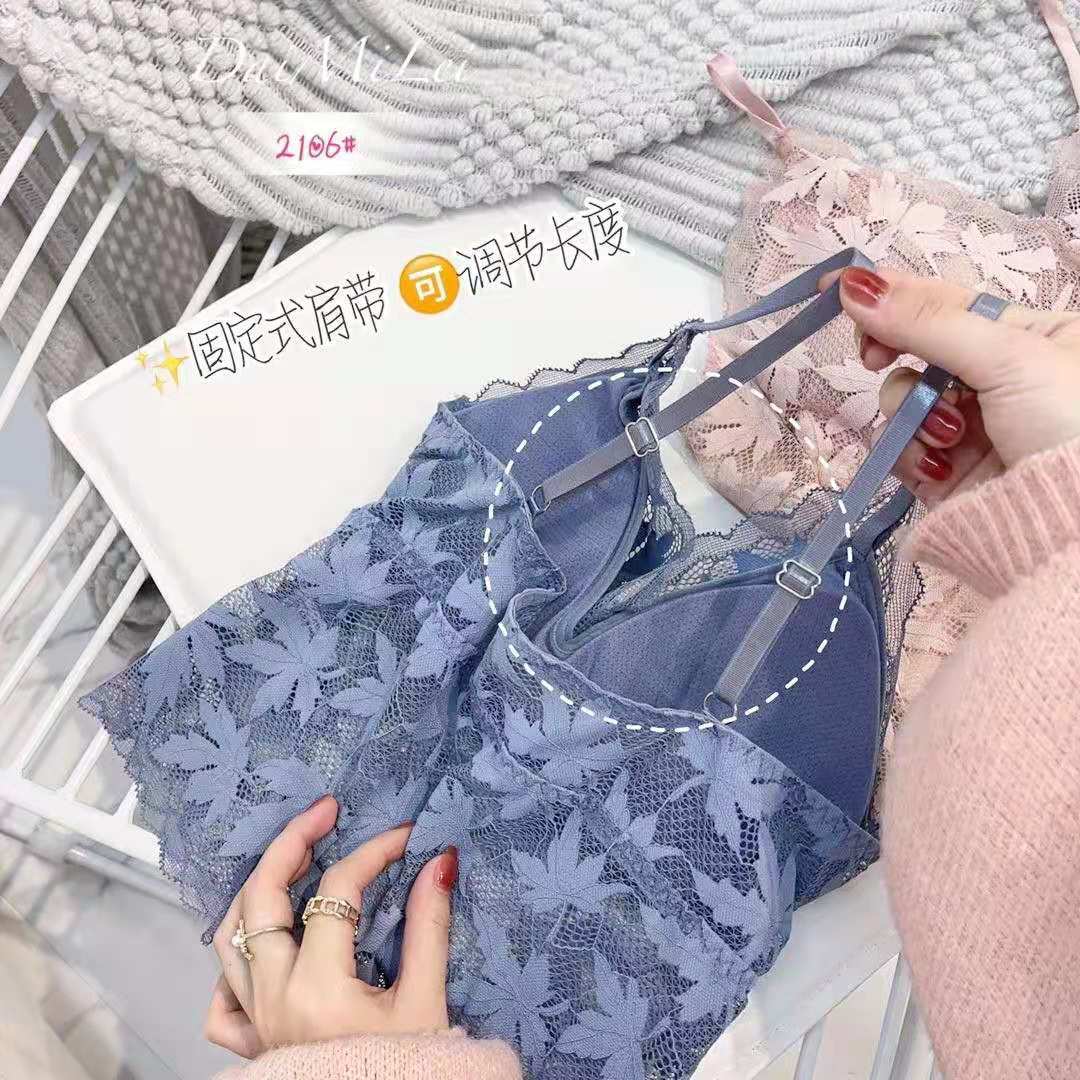 Nova folha de bordo francesa camisola de renda das mulheres sem anel de aço reunidos para envolver a pele do peito sexy de volta fornecimento direto da fábrica