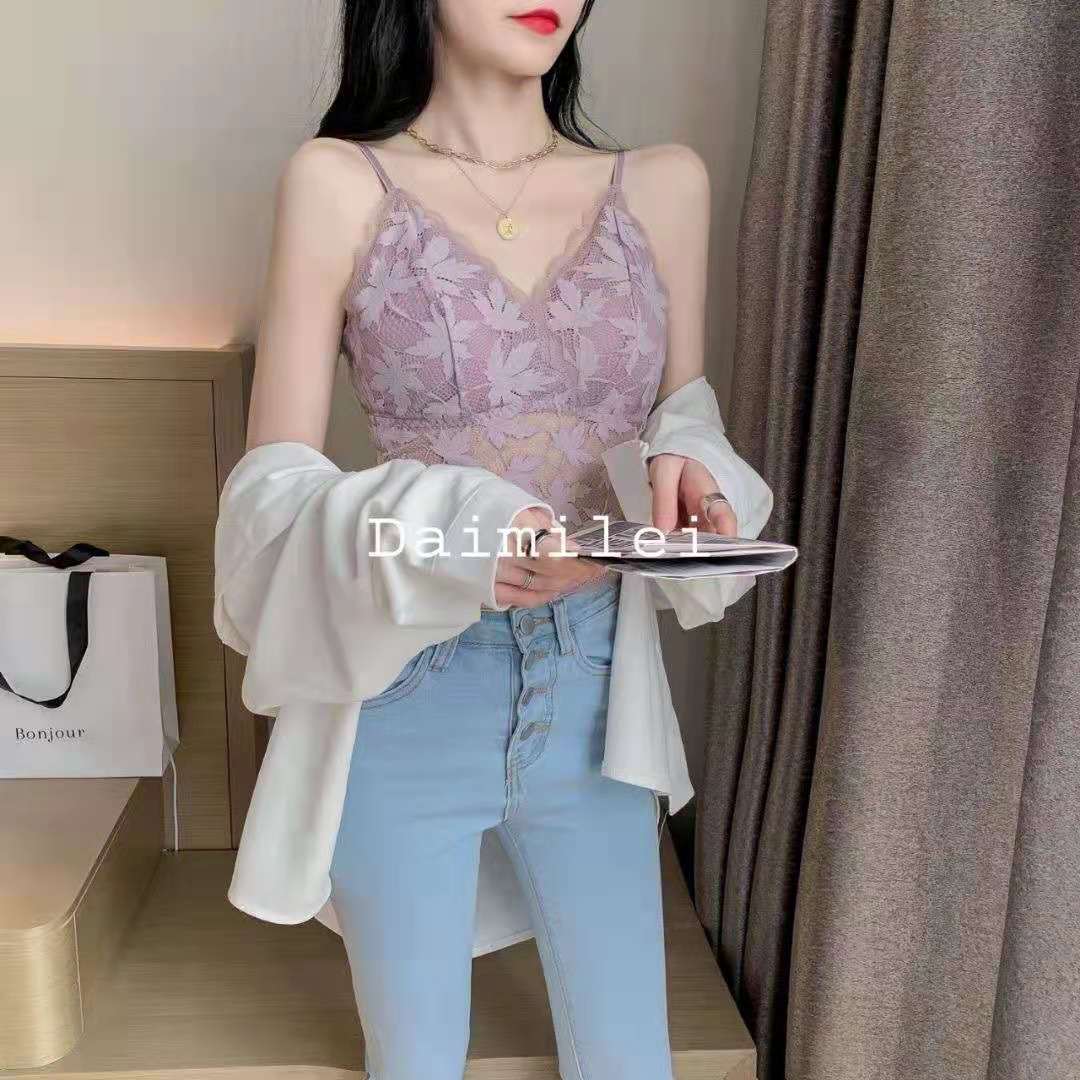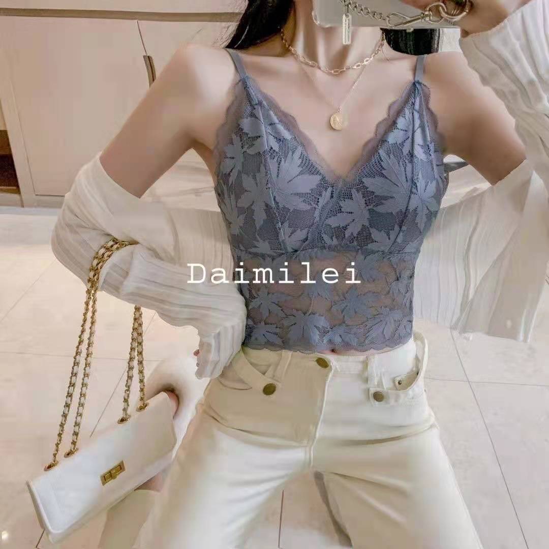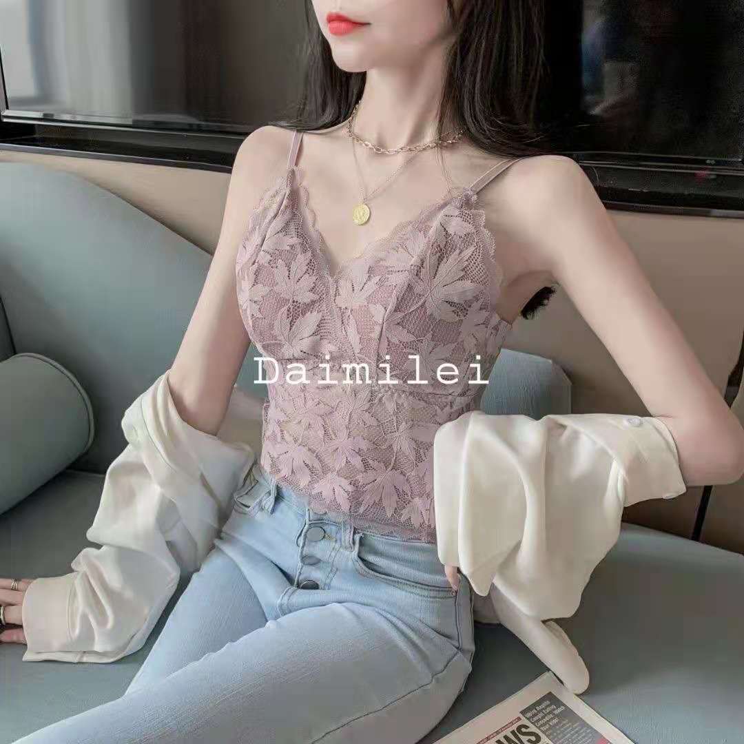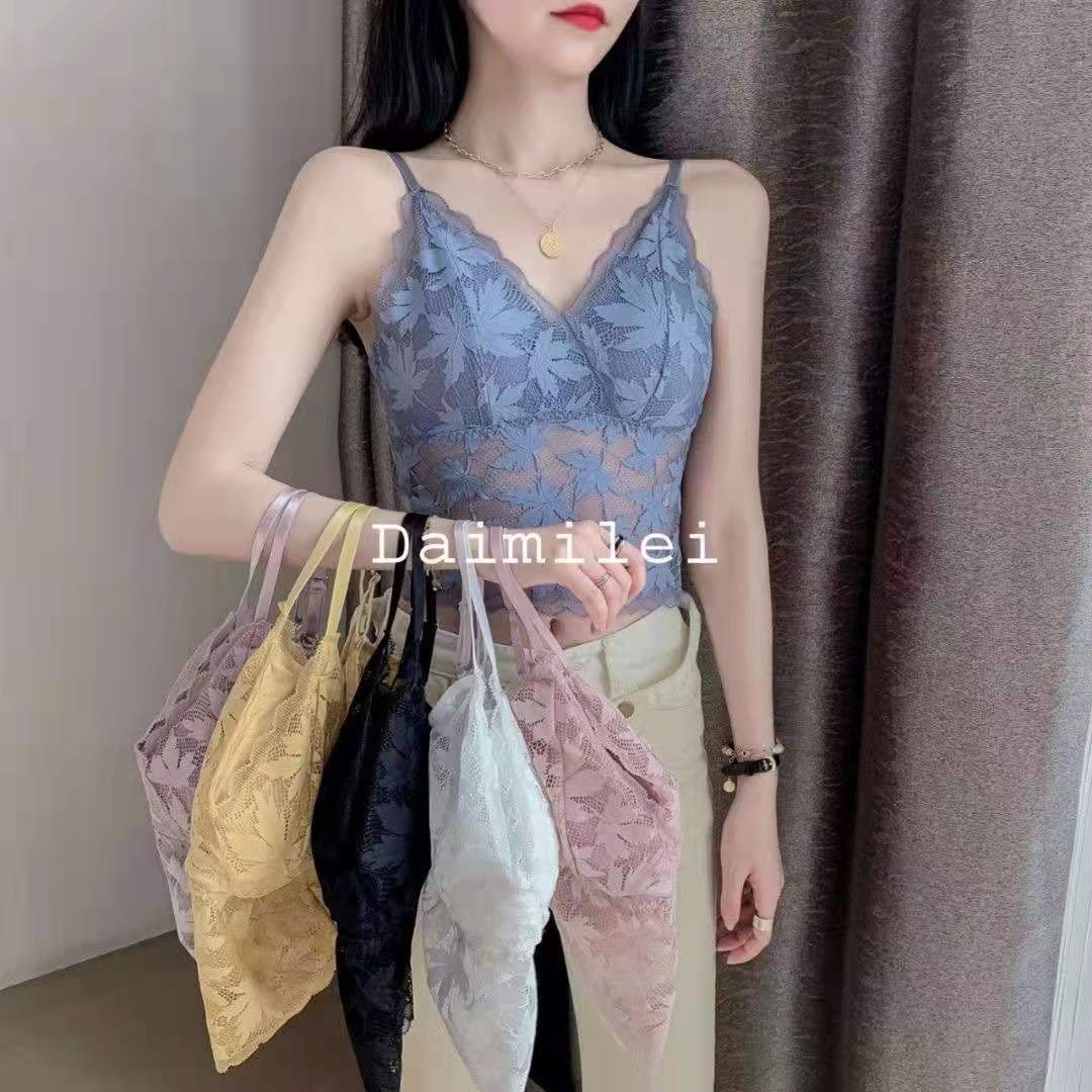Nova folha de bordo francesa camisola de renda das mulheres sem anel de aço reunidos para envolver a pele do peito sexy de volta fornecimento direto da fábrica