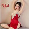 Fan Lei Lingerie Sexy Decote V Profundo Cetim Camisola Sexy Tentação na Cama Camisola Renda Vestido de Noite Feminino 338