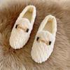Sapatos Slip-On Beanie para Mulheres no Outono e Inverno, Sapatos Peludos Quentes de Sola Grossa Estilo Coreano, Sapatos de Algodão Versáteis de Sola Reta com Veludo para Mães