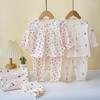 Traje Infantil Primavera e Verão Zou Dobra Gaze Nova Roupa de Casa Pijama Roupa Externa de Bebê Traje 1-3 Anos Estilo Princesa