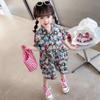 Macacão Curto Floral de Manga Curta com Gola Reversível para Meninas, Novo Estilo de Verão, Roupa Infantil de Comércio Exterior, Atacado, Idades 3-8