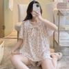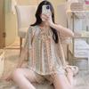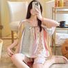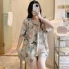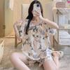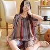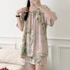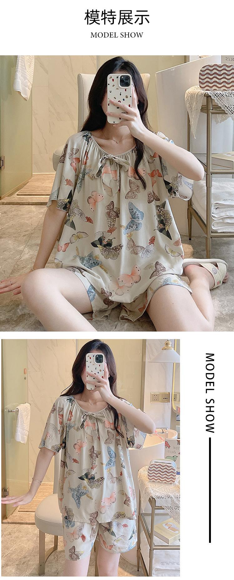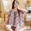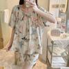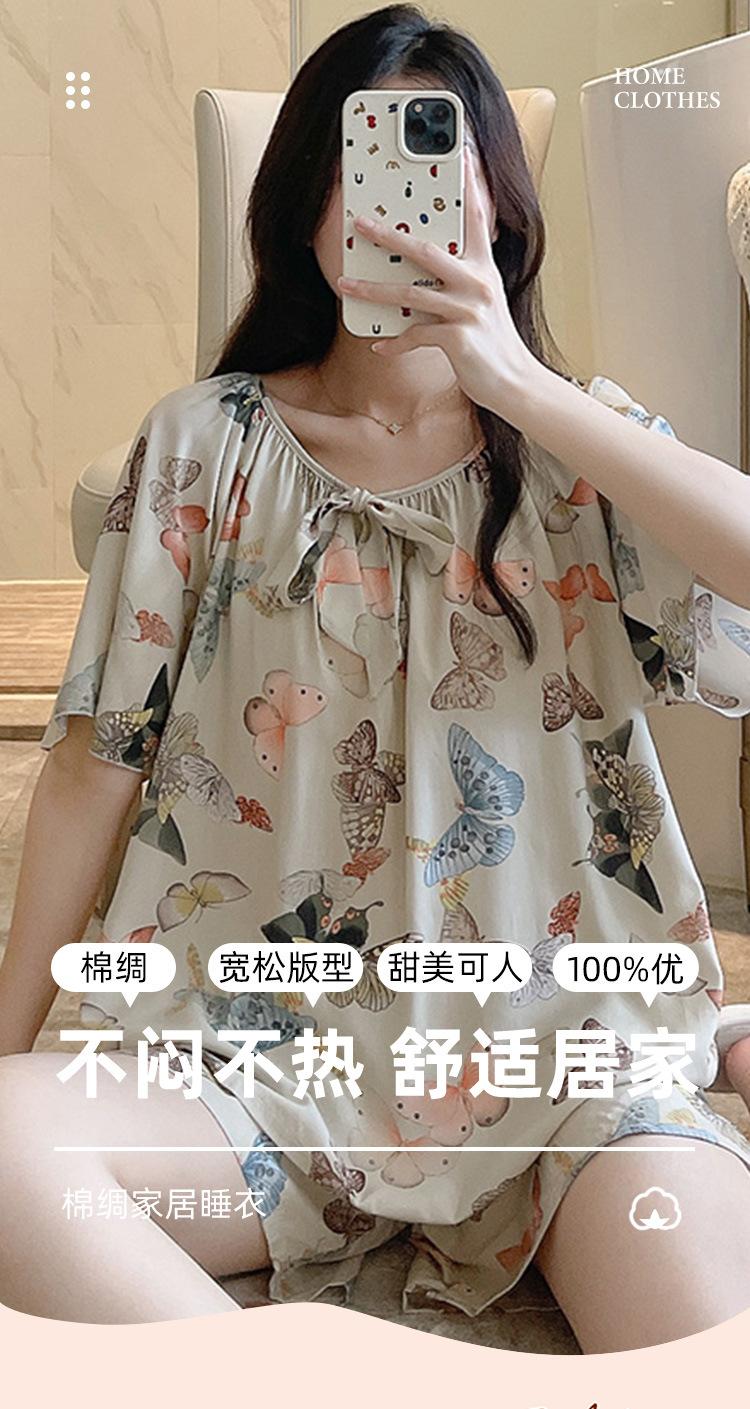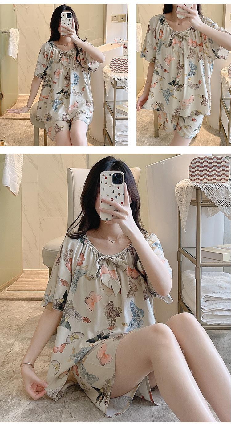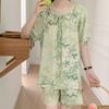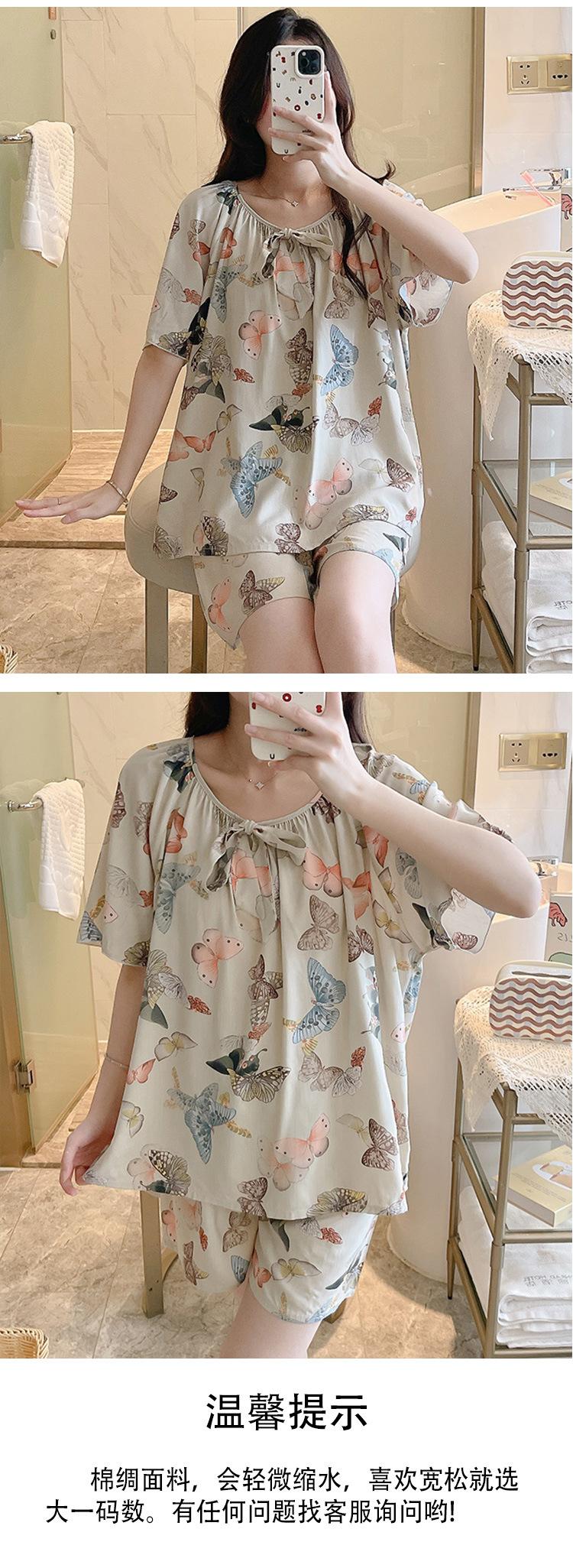 Pijamas de seda de algodão das mulheres verão novo chinês borboleta algodão seda casa vestir elegante fresco de alta qualidade de manga curta terno de seda de algodão
