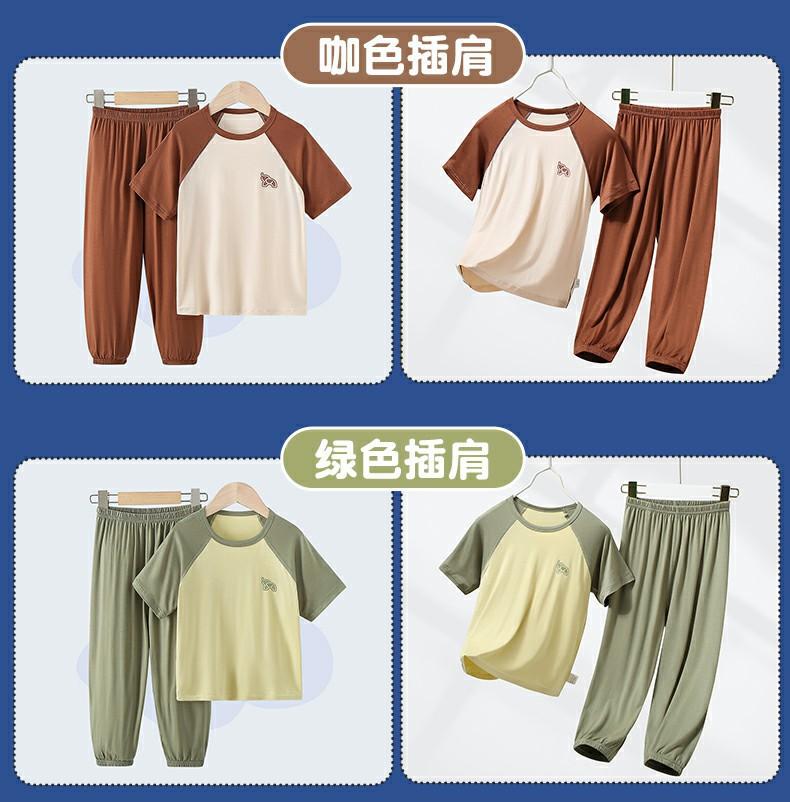 Pijama Infantil Modal Verão Meninos Calças de Manga Curta Meninas Roupa de Casa terno Seda Gelo Roupa de Ar Condicionado para Meninos Fina