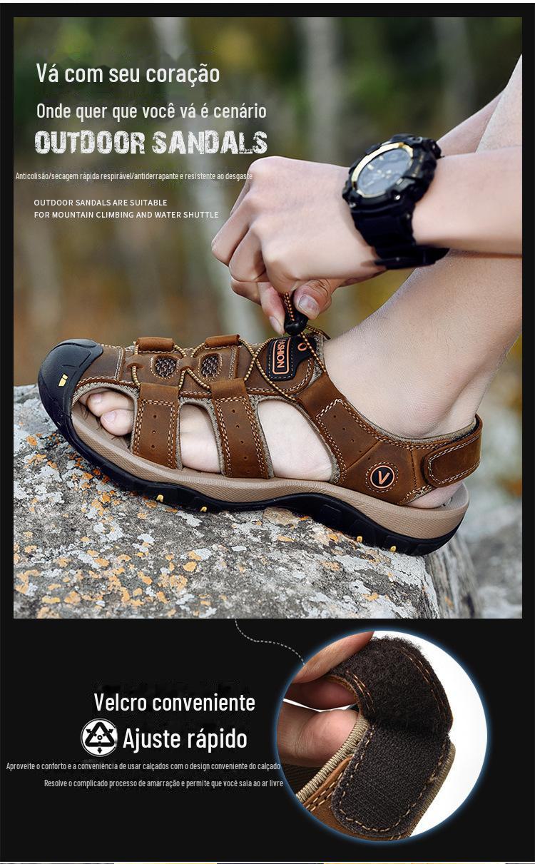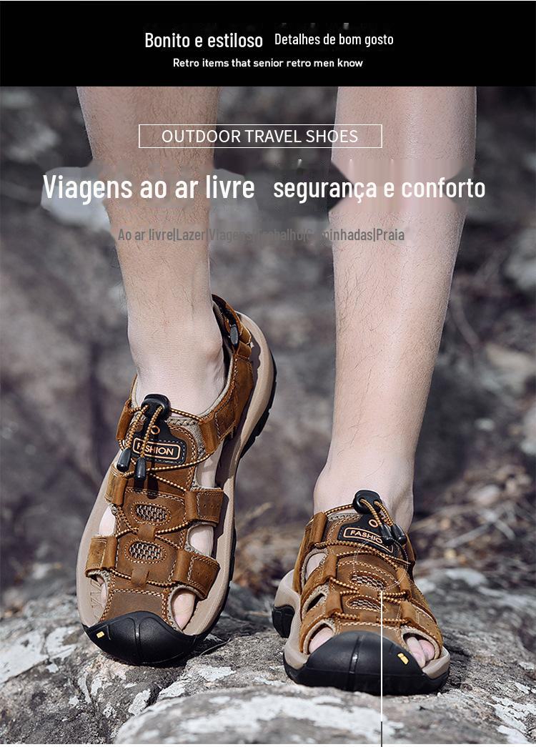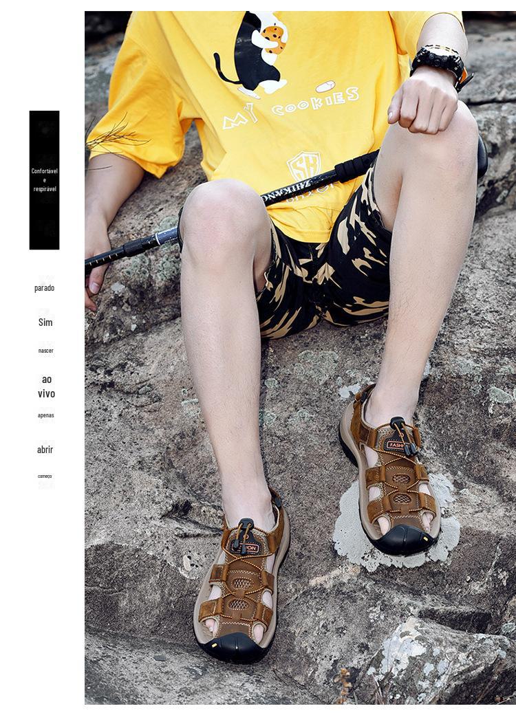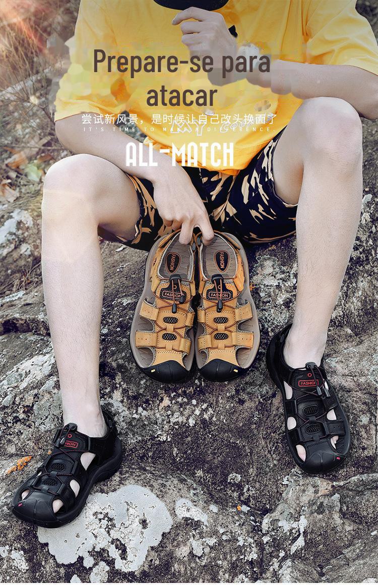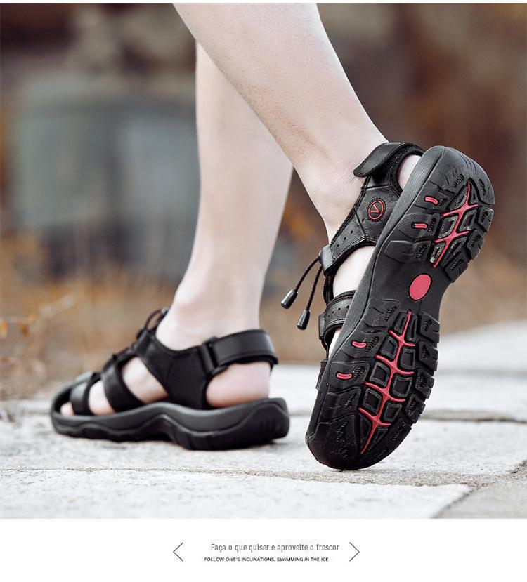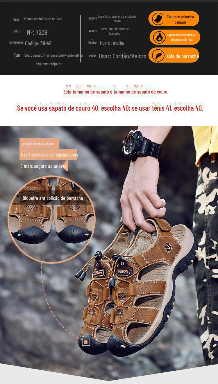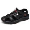Sandálias e chinelos de tamanho grande para homens de verão, sapatos de praia ao ar livre, Velcro sandálias fechadas, couro camada superior, sapatos casuais respiráveis