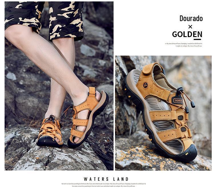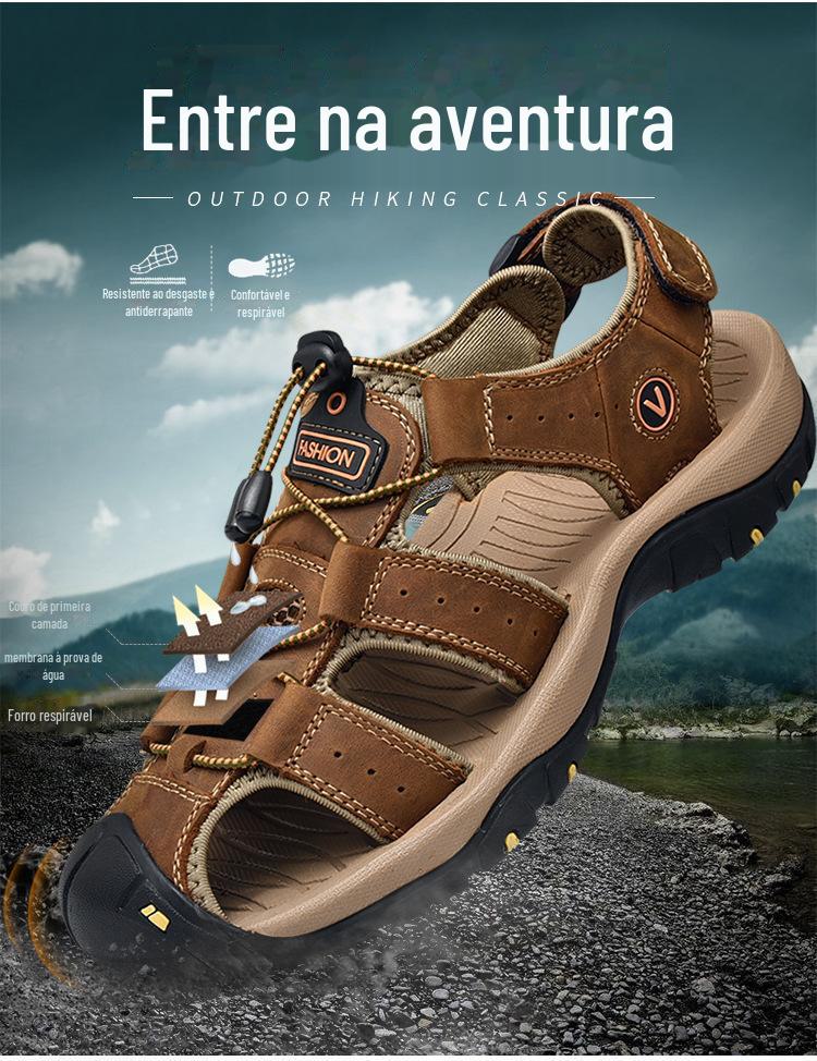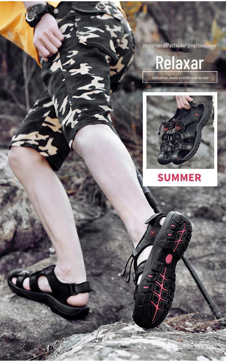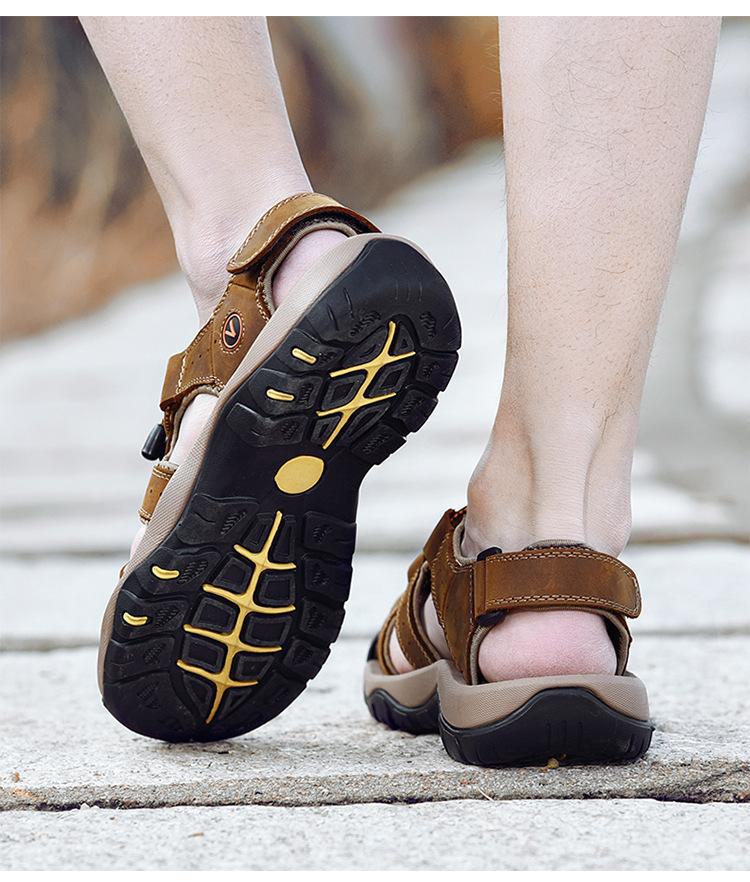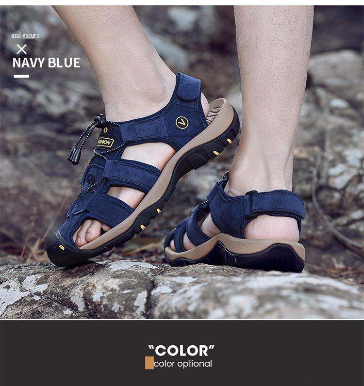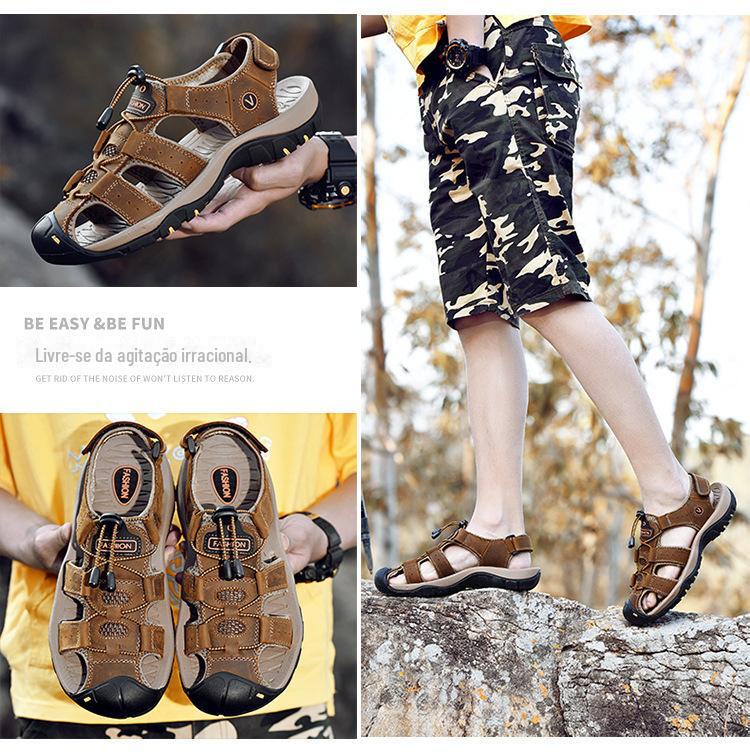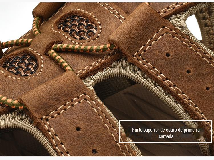 Sandálias e chinelos de tamanho grande para homens de verão, sapatos de praia ao ar livre, Velcro sandálias fechadas, couro camada superior, sapatos casuais respiráveis