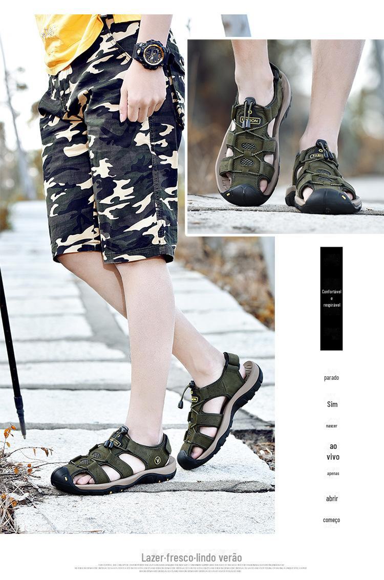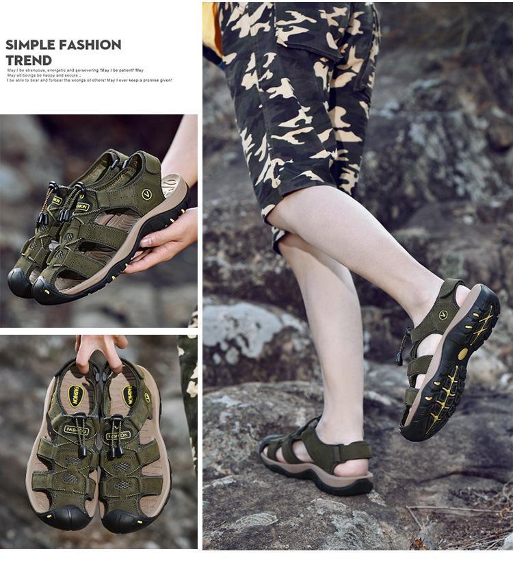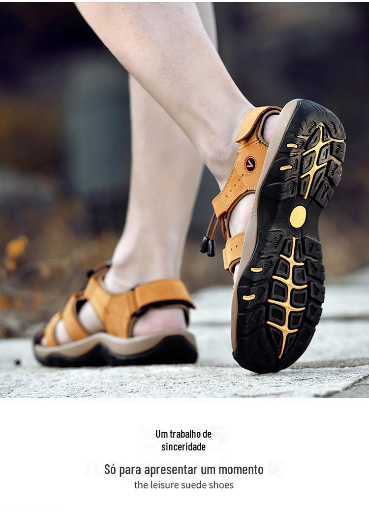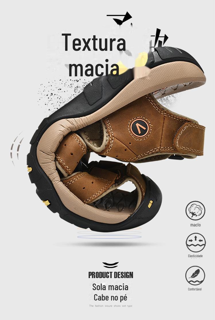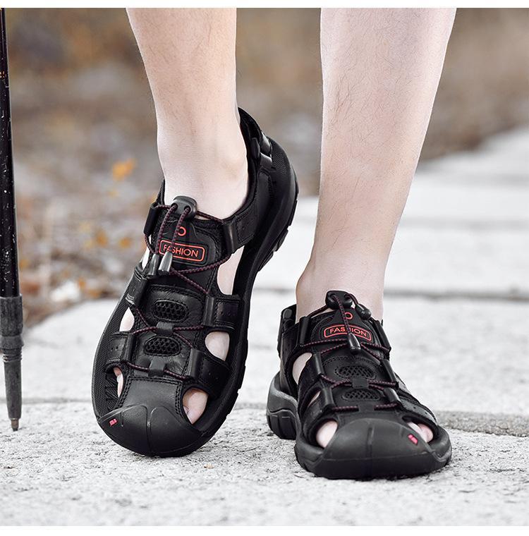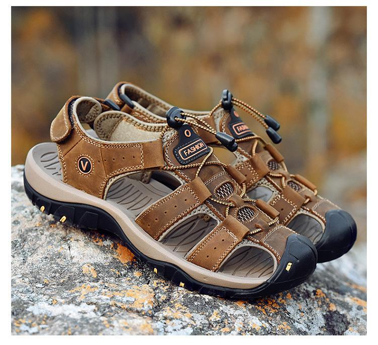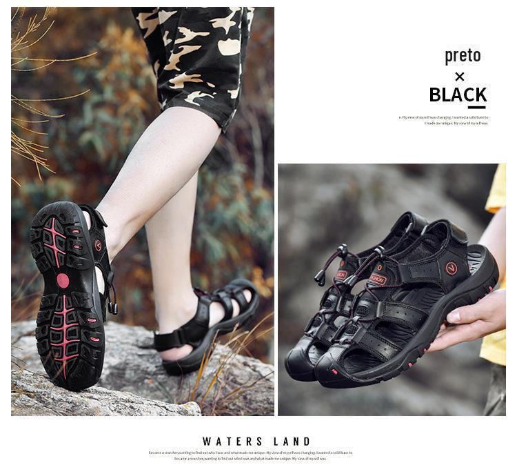 Sandálias e chinelos de tamanho grande para homens de verão, sapatos de praia ao ar livre, Velcro sandálias fechadas, couro camada superior, sapatos casuais respiráveis