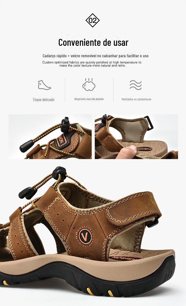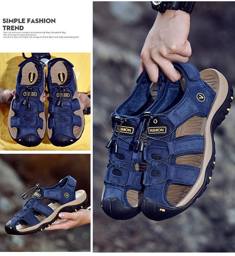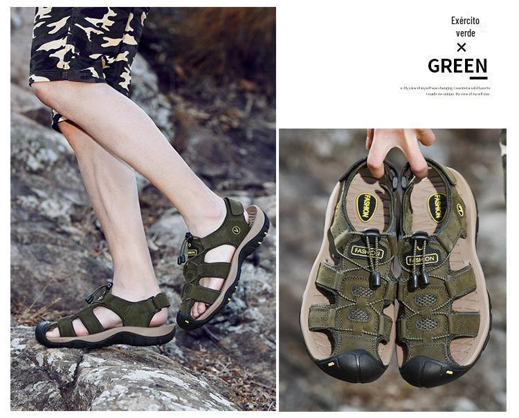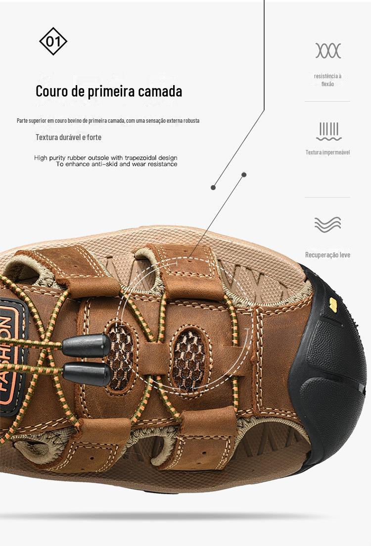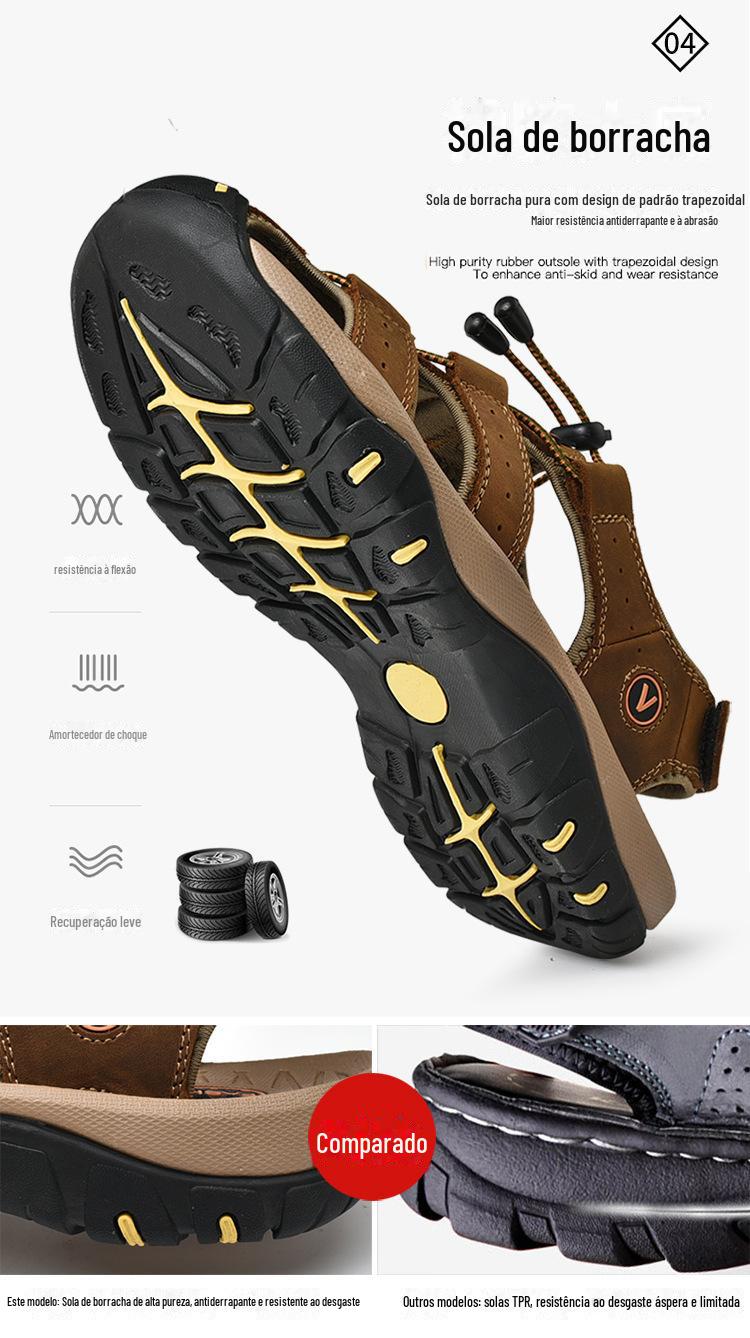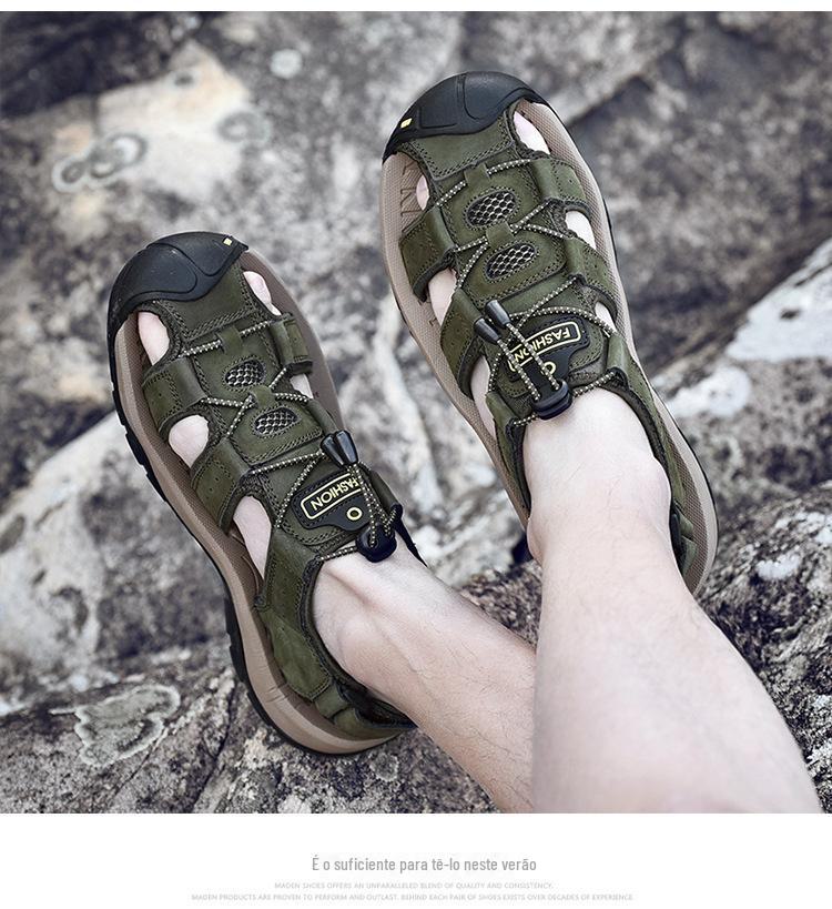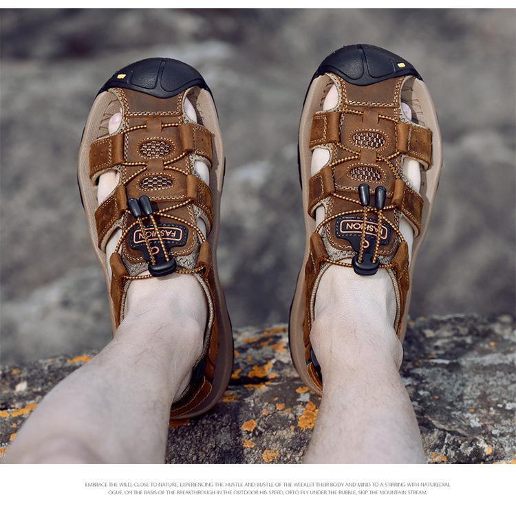 Sandálias e chinelos de tamanho grande para homens de verão, sapatos de praia ao ar livre, Velcro sandálias fechadas, couro camada superior, sapatos casuais respiráveis