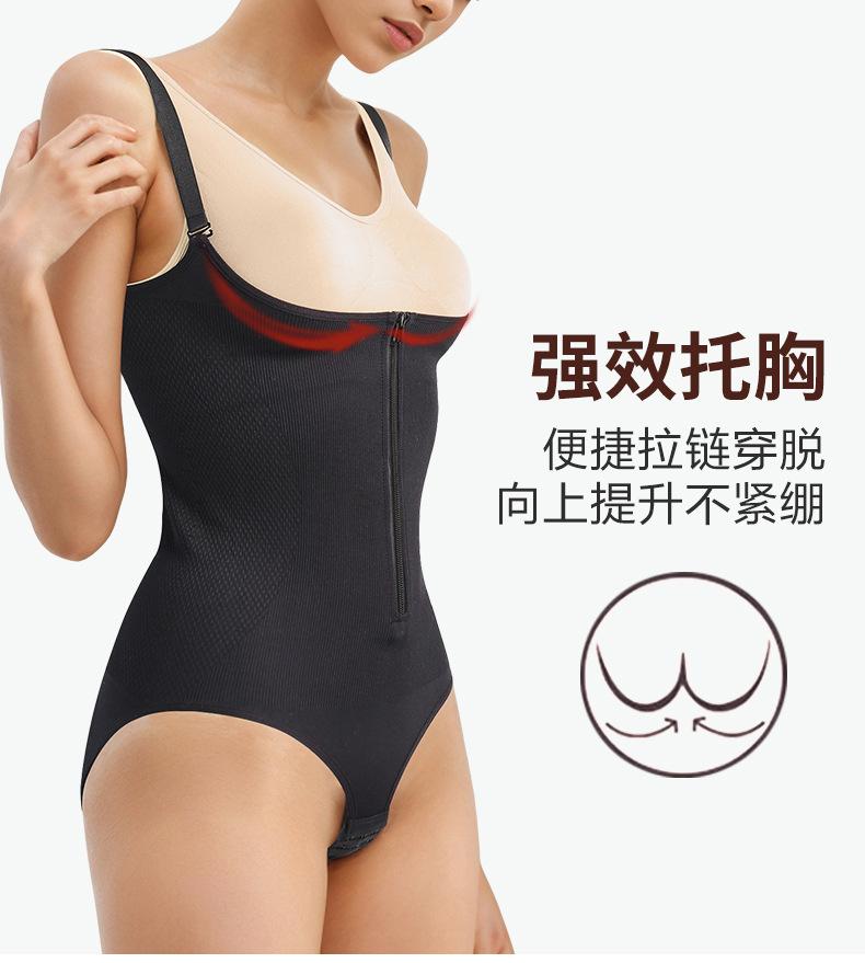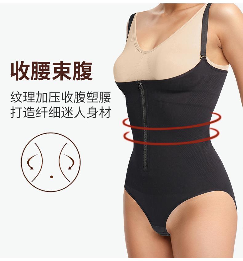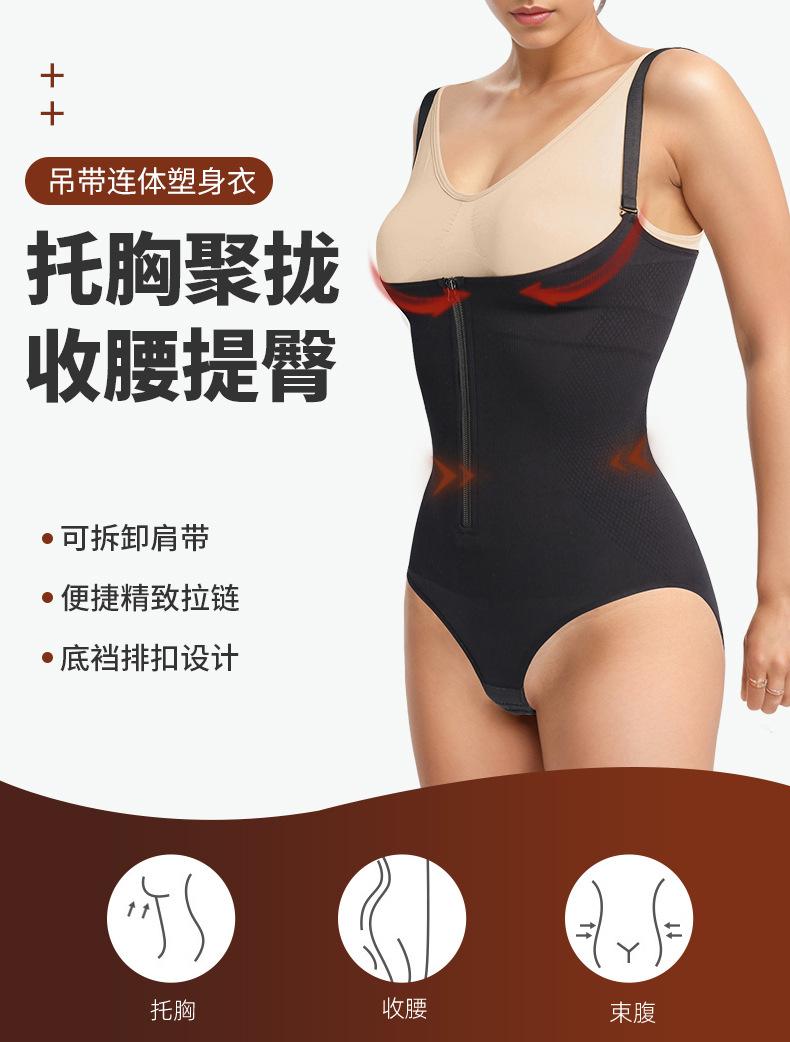 Roupas de modelagem de uma peça europeias e americanas transfronteiriças com zíper de suporte ao peito Roupas apertadas femininas Briefs Sling Belt Strap Corset