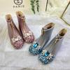 Botas de Princesa para Meninas 2025 Inverno Novo Estilo Strass Botas Infantis Botas Martin Botas Rasteiras Simples para Meninas Botas de Cano Médio para Meninas