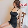 Lingerie Sexy, Pijama Fina de Seda de Verão para Casa, Sexy Saia de Suspensório Feminina Preta de Palácio com Camisola, Tentadora e Sexy