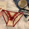 Renda sexy puro desejo estilo cintura baixa respirável cueca feminina doce vermelho ano de nascimento japonês malha cueca feminina