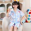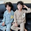 Pijamas infantis primavera 2024, roupas novas para casa, terno listrado, casual, solto, ombro caído, roupas para casa para meninos e meninas