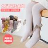 2024 Outono Novo Meia-calça Fina de Menina Algodão Tricotado Listrado Vertical Laço Grande Leggings Infantis Pequenas e Médias