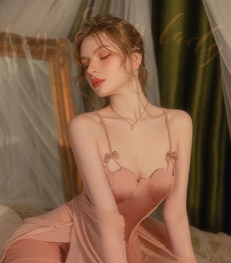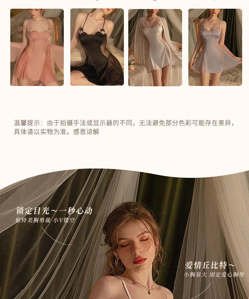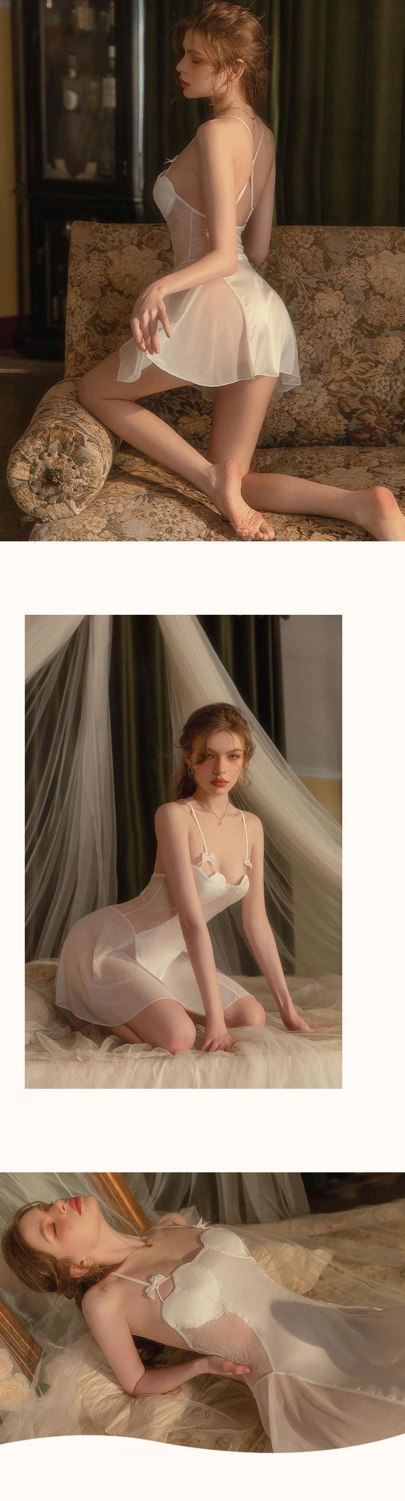 Pijama sexy com design de alta qualidade, camisola de cetim com alças finas, peito pequeno, costas nuas, camisola Pure Desire, roupa de dormir feminina