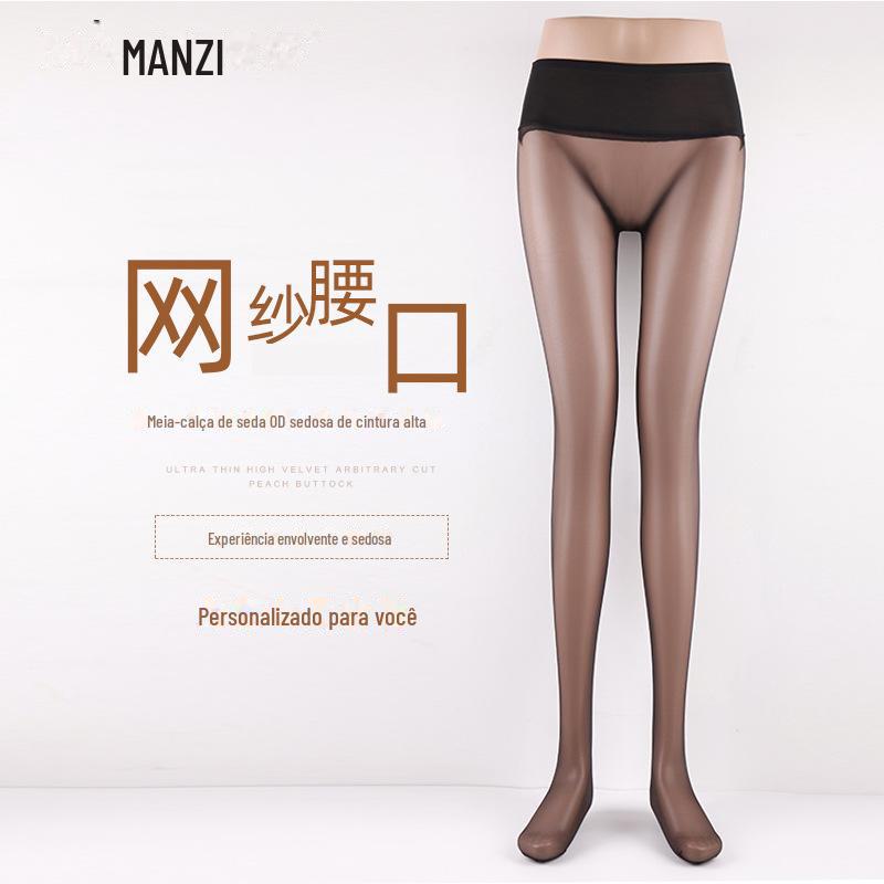 Manzi 0D Ultra-finas Cintura Alta Sem Costura Sedosa Leve Permeável Núcleo de Seda Fiada Sexy Invisível Seda Preta Tentação Sem Costura Meias de Base de Virilha