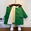 Casaco de lã para meninos, casaco verde militar infantil, estilo ocidental, casaco de algodão de comprimento médio para inverno, casaco militar, jaqueta verde acolchoada de algodão