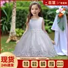 Vestido de princesa para meninas transfronteiriças, estilo coreano, sem mangas, com contas, vestido infantil, vestido de princesa para performance, vestido de renda