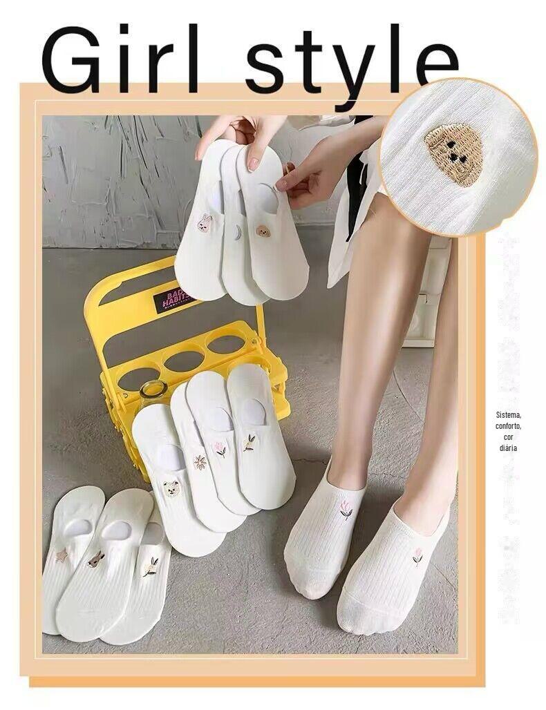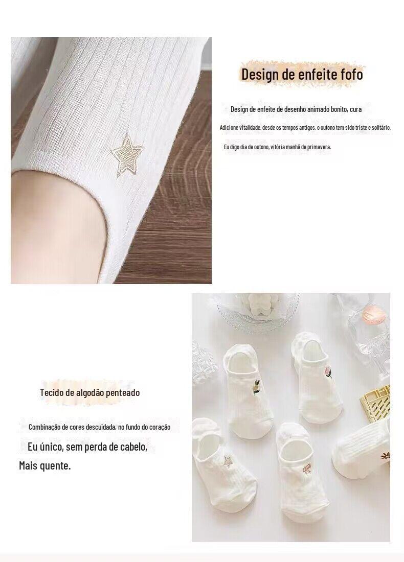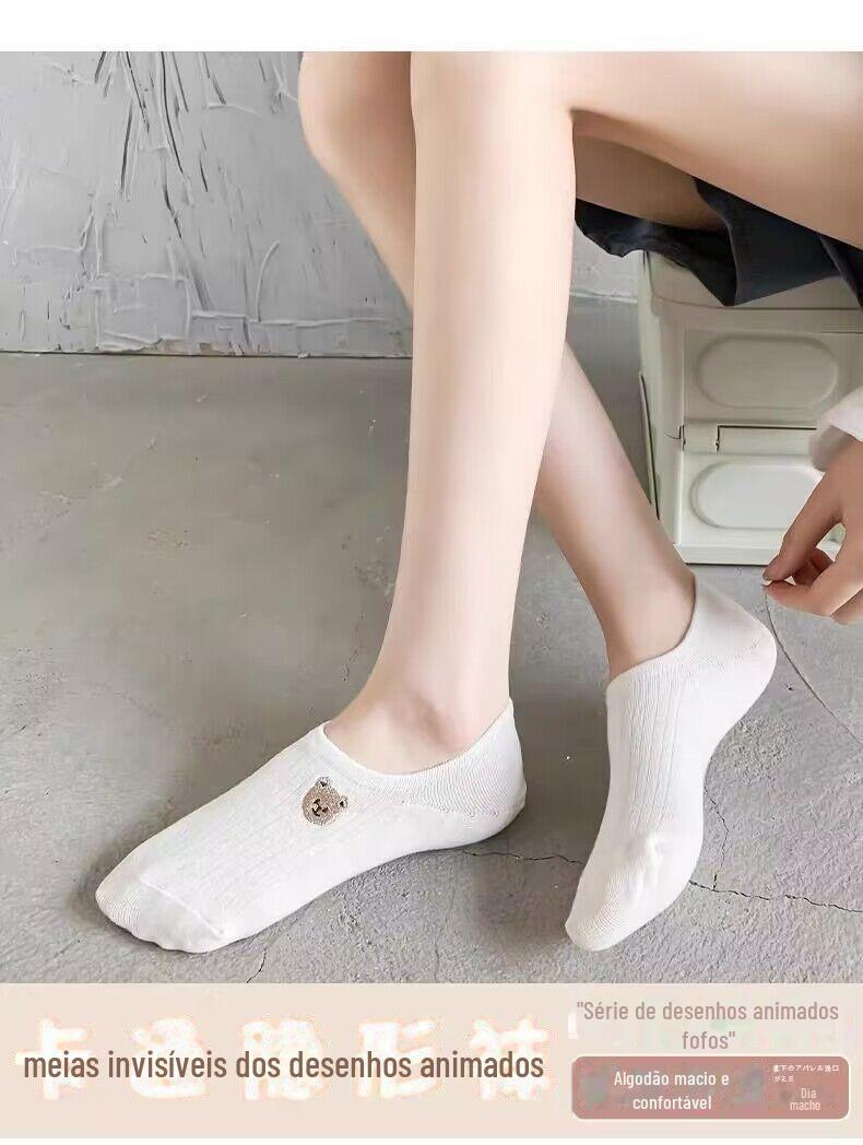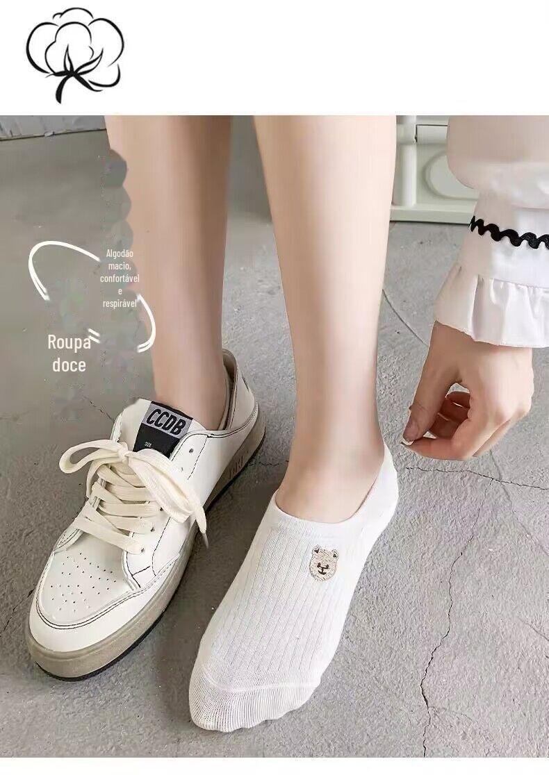 Meias Femininas Barco Meias Branco Verão Fino Antiderrapante Meias Curtas Verão Respirável Suor Absorvente Invisível Meias Barco Meias Mulheres