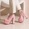 2024 comércio exterior nova passarela bico redondo salto grosso salto alto tira cruzada tamanho grande sandálias bico vazado sapatos femininos