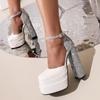 2022 verão comércio exterior novo quadrado cabeça estourada cabeça dupla plataforma impermeável salto grosso super salto alto costas vazias chinelos de lantejoulas mulheres
