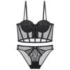 Lingerie Estilo Francês, Lingerie Feminina Estilo Colete com Barbatanas e Laço, Seios Pequenos Parecem Maiores, Conjunto Sutiã Push-Up