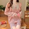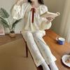 2024 Primavera e Outono novo arco colorido pijama de mangas compridas feminino doce boneca bonito colarinho outerwear homewear terno