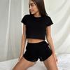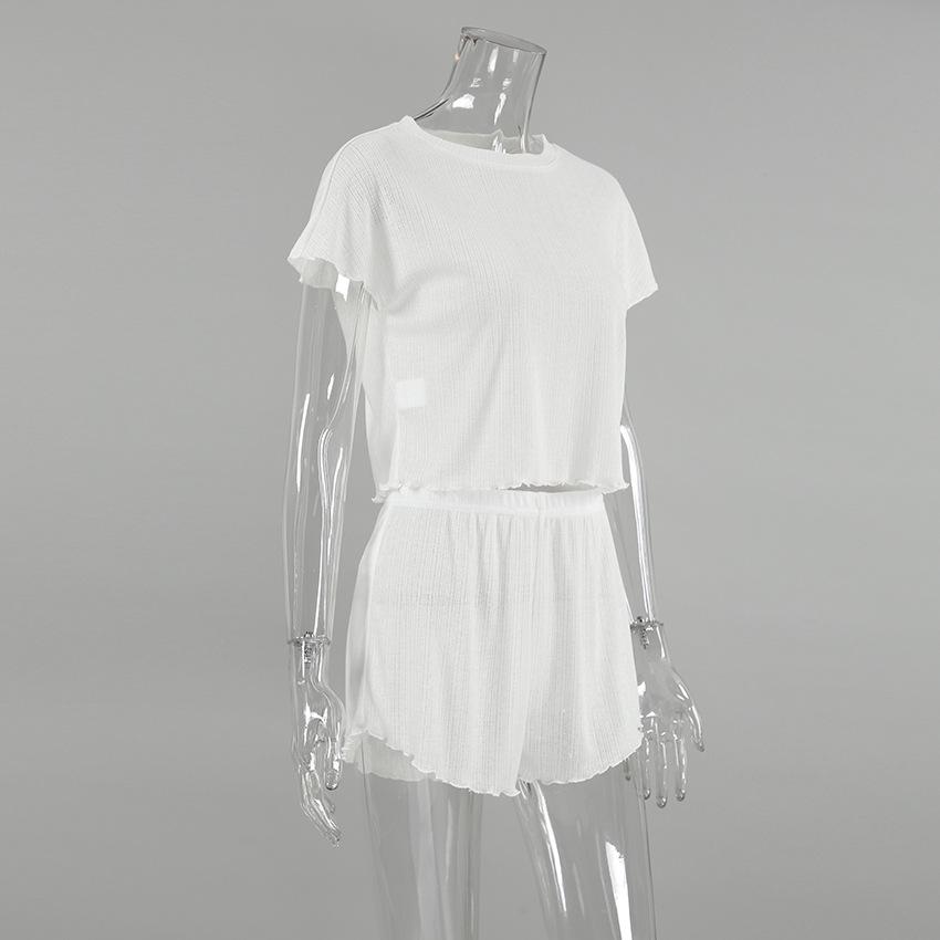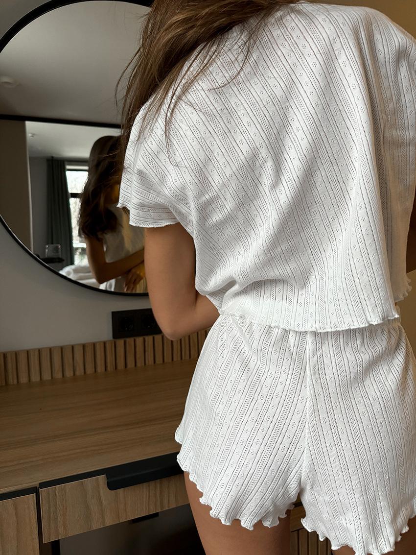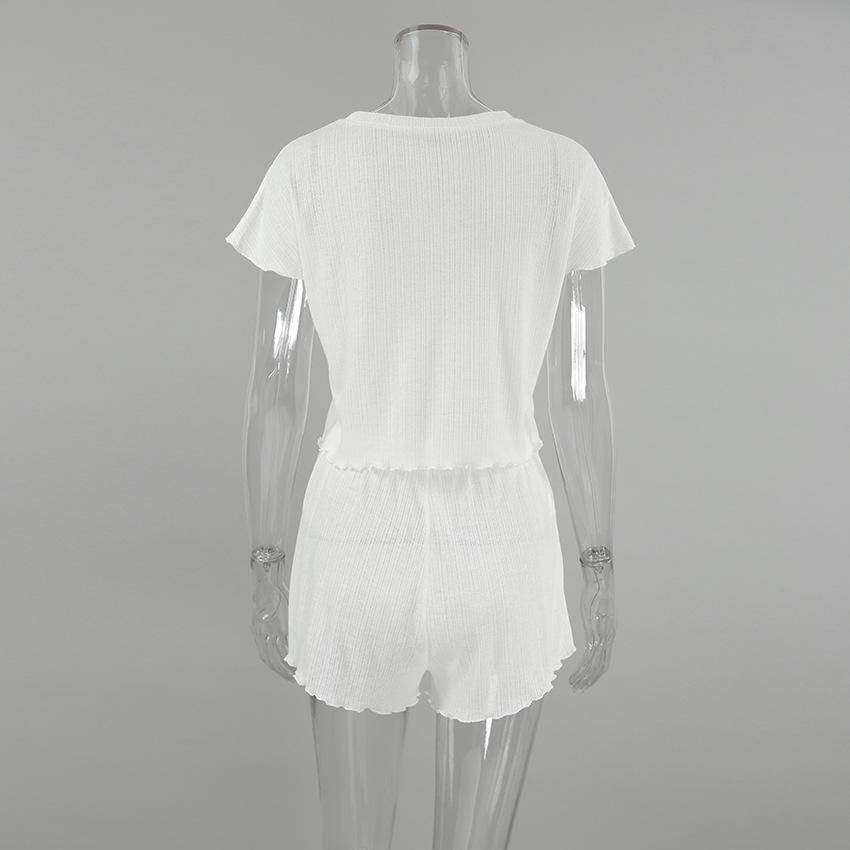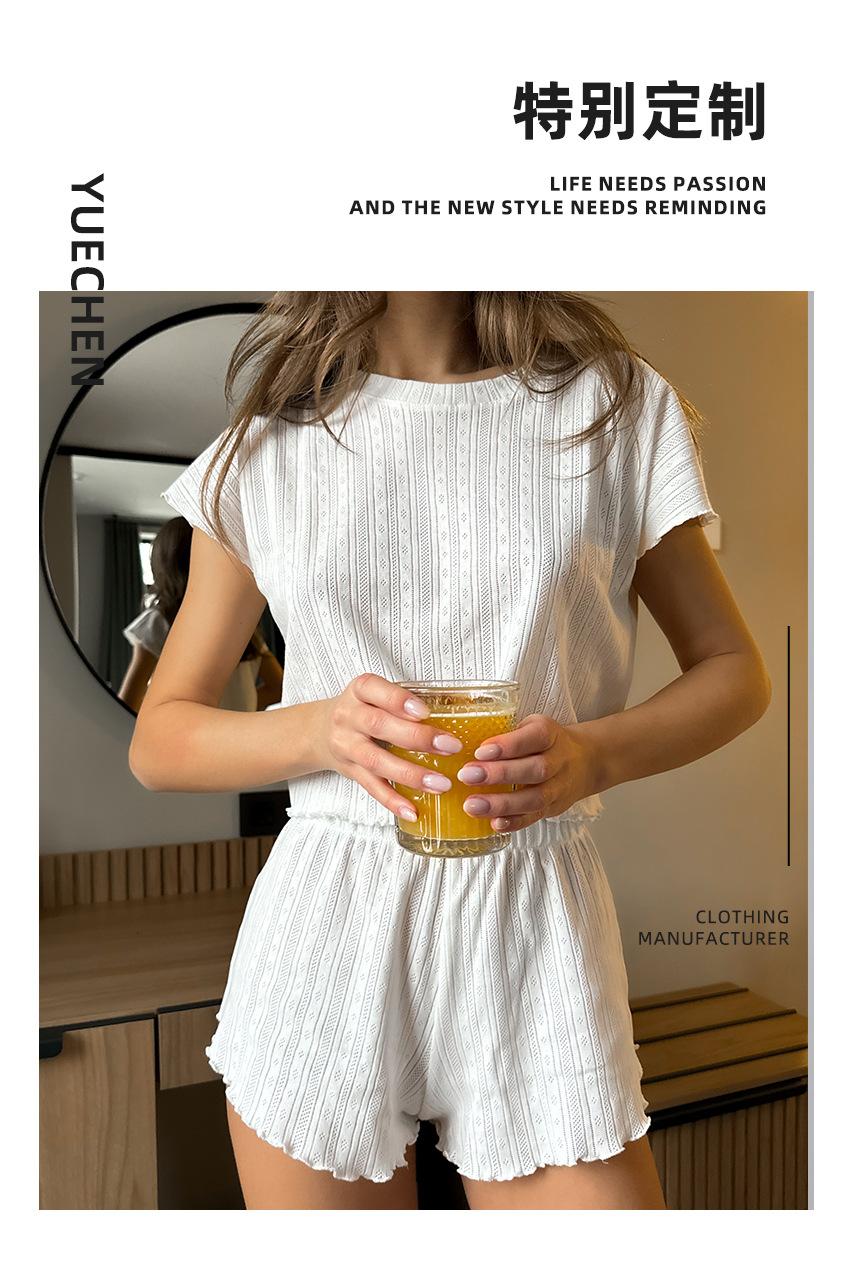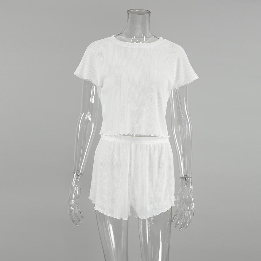 Verão Europeu e Americano Novo Malha Branca Folgada Confortável Shorts de manga curta Comércio Exterior Pijamas terno Cross-border Home Roupas para Mulheres