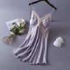 Pijamas sexy floral francês Ice Silk fino vestido de noite de renda com almofada peito homewear de verão para as mulheres