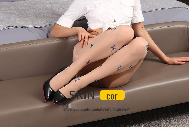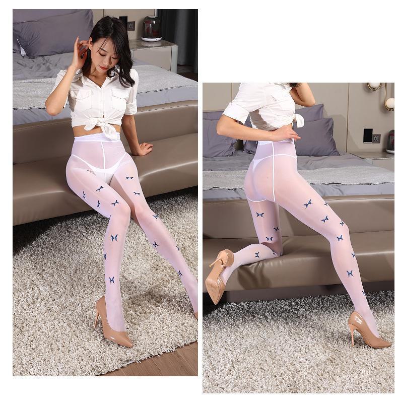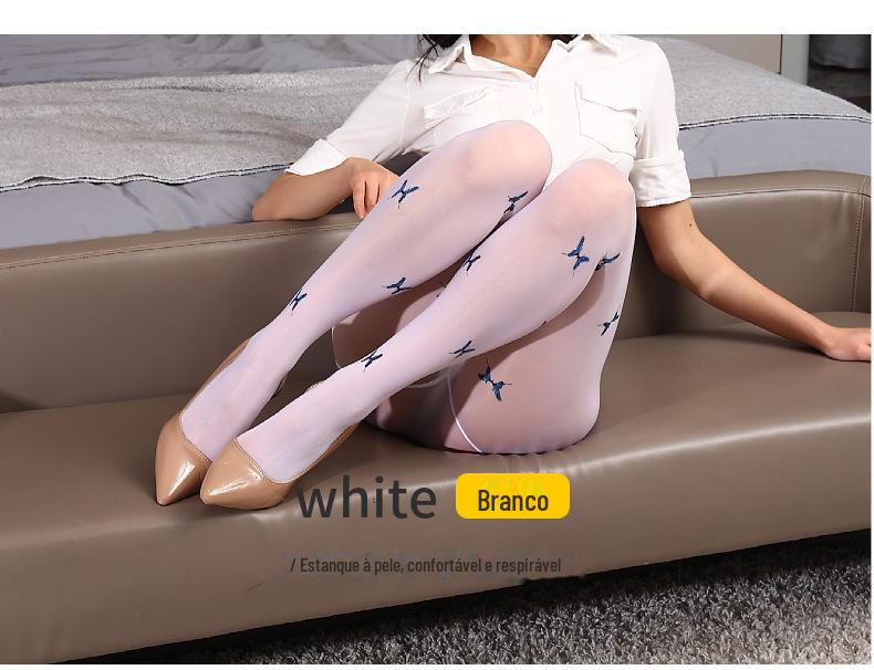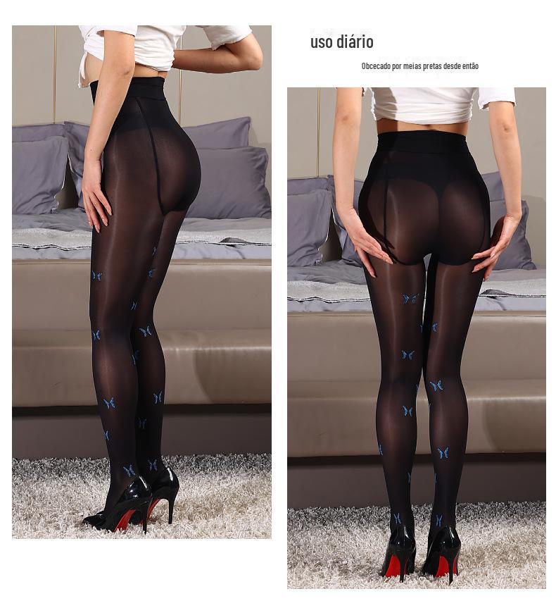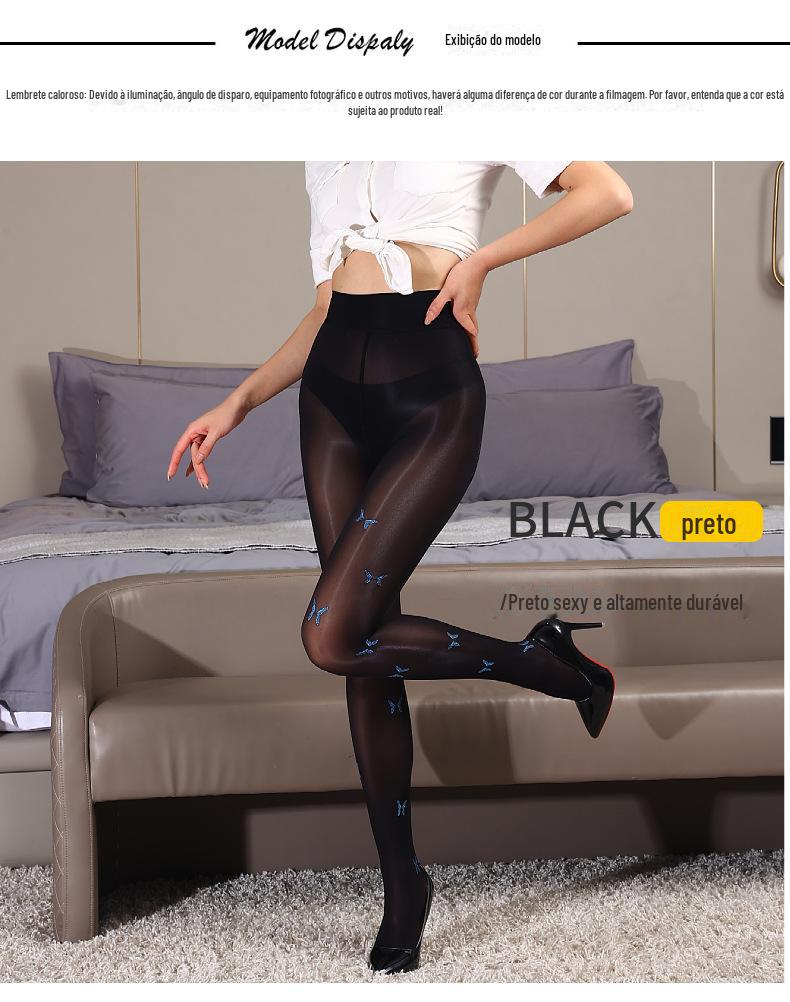 Borboleta brilhante Impresso Meias de Seda Ultra-fina Deslizamento de Seda Tamanho Grande Anti-gancho Meias de Óleo de Cavalo de Seda Sexy Suave Meia-calça de Seda Preta Verão