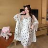 Pijamas mulheres primavera e verão sexy camisola puro desejo estilo estampado fino gelo seda slip saia camisola duas peças casa roupas conjunto