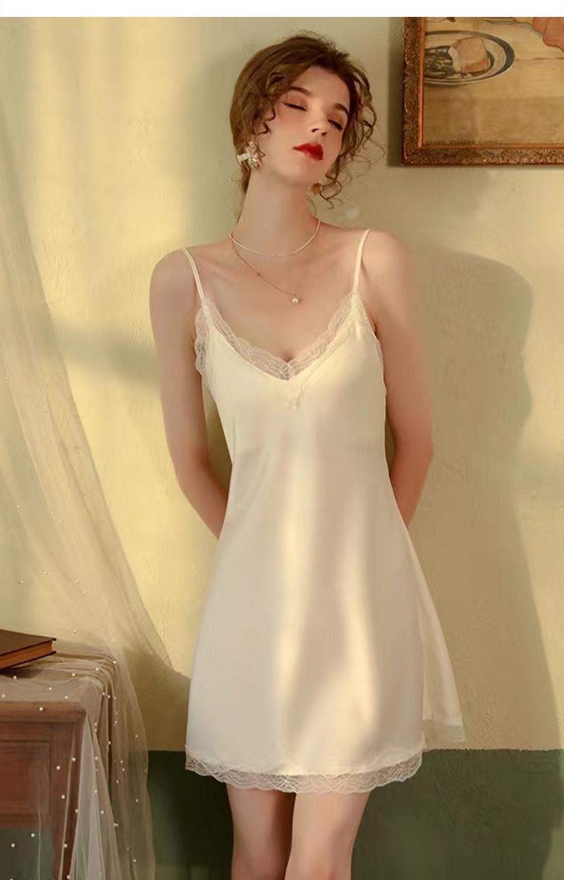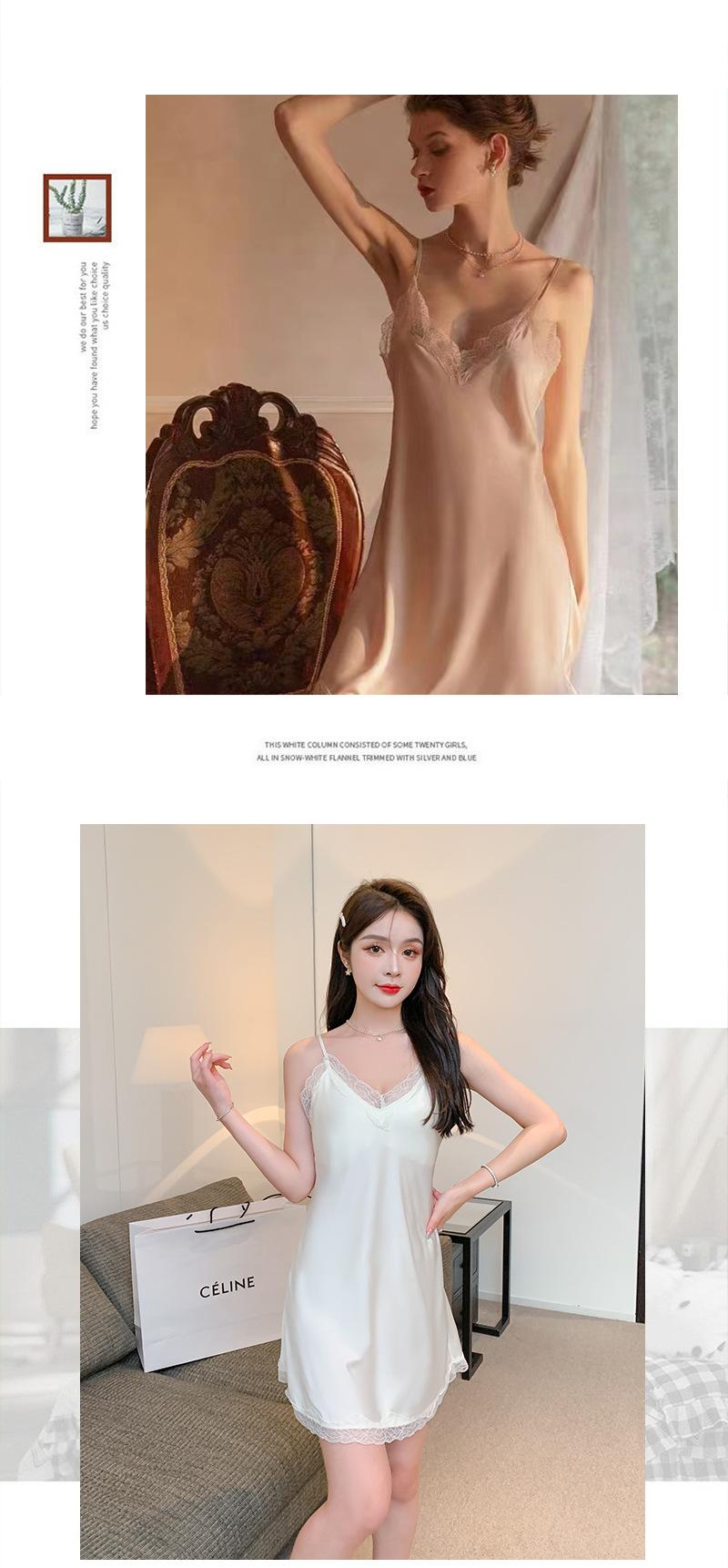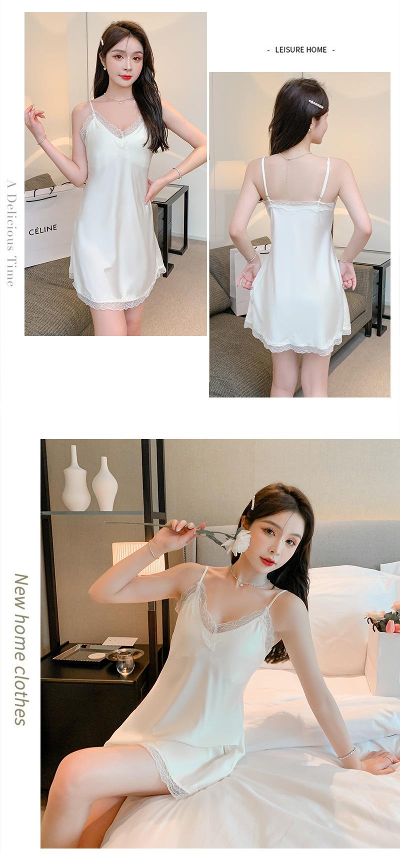 Pijamas Sexy Ice Silk Summer Thin 2024 com Almofada de Peito Novo Estilo Pure Desire Estilo Francês Renda Seda Sling Camisola