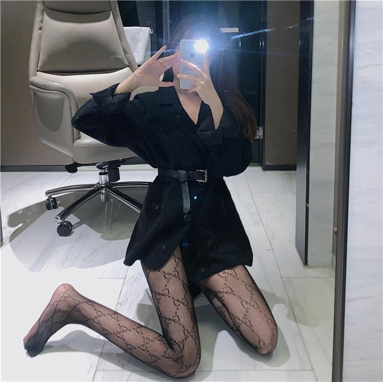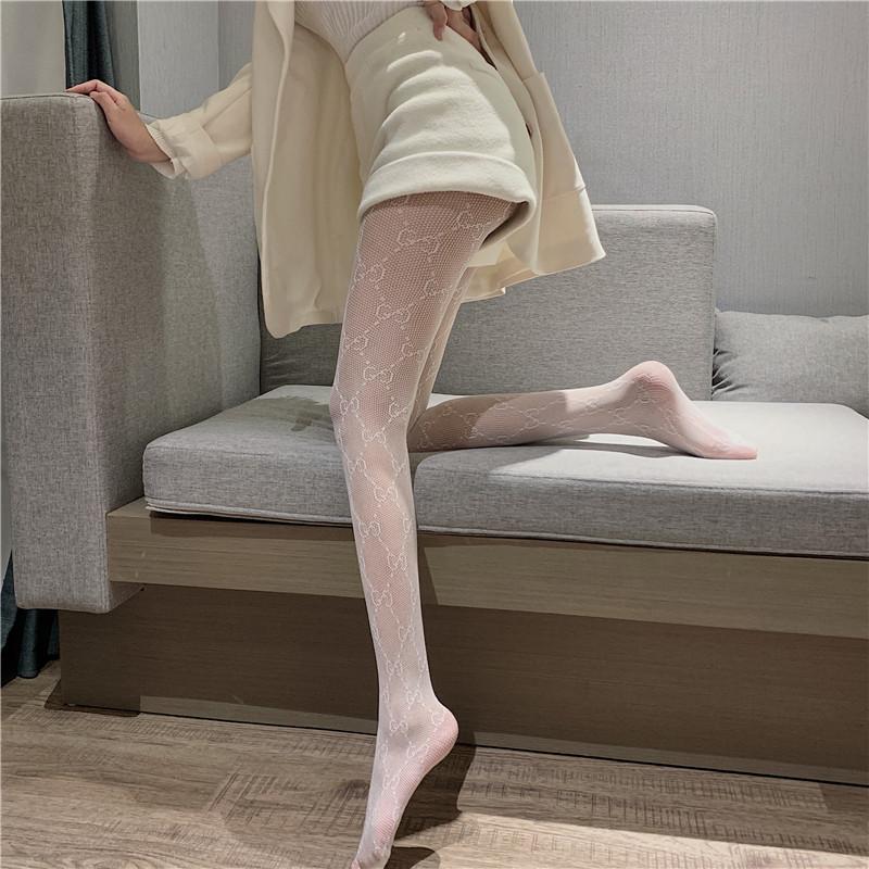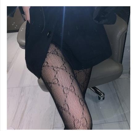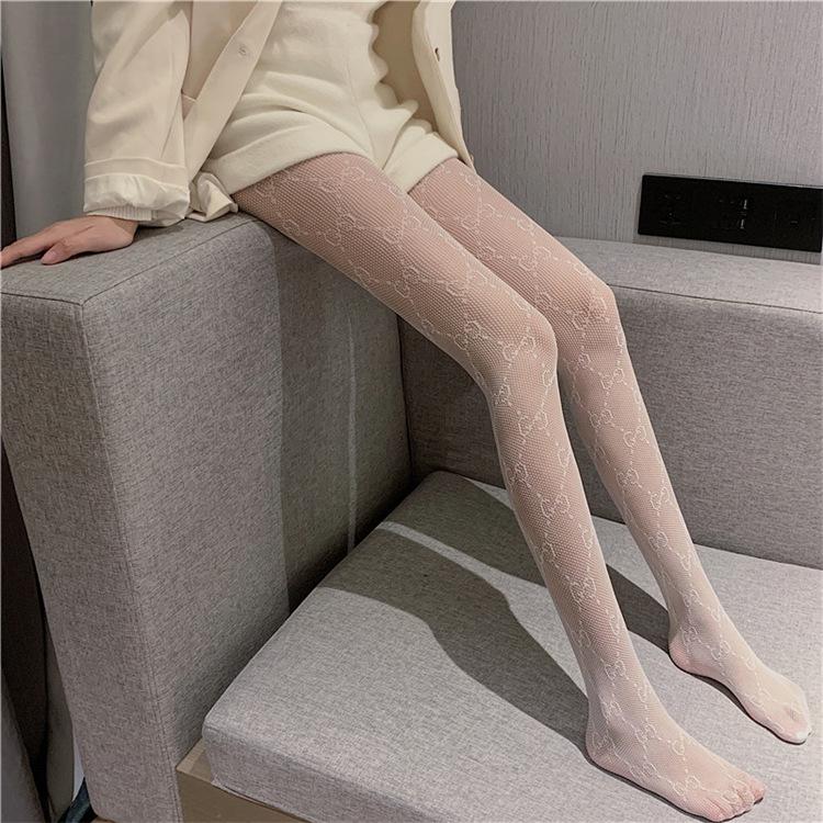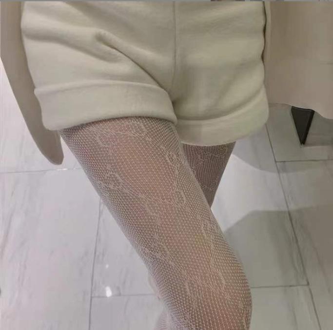 Dupla g Carta Meias de Seda Femininas Primavera e Verão Internet Popular ins Fishnet Meias 2022 Nova Calça Preta Grade Oco Bottoming Meias
