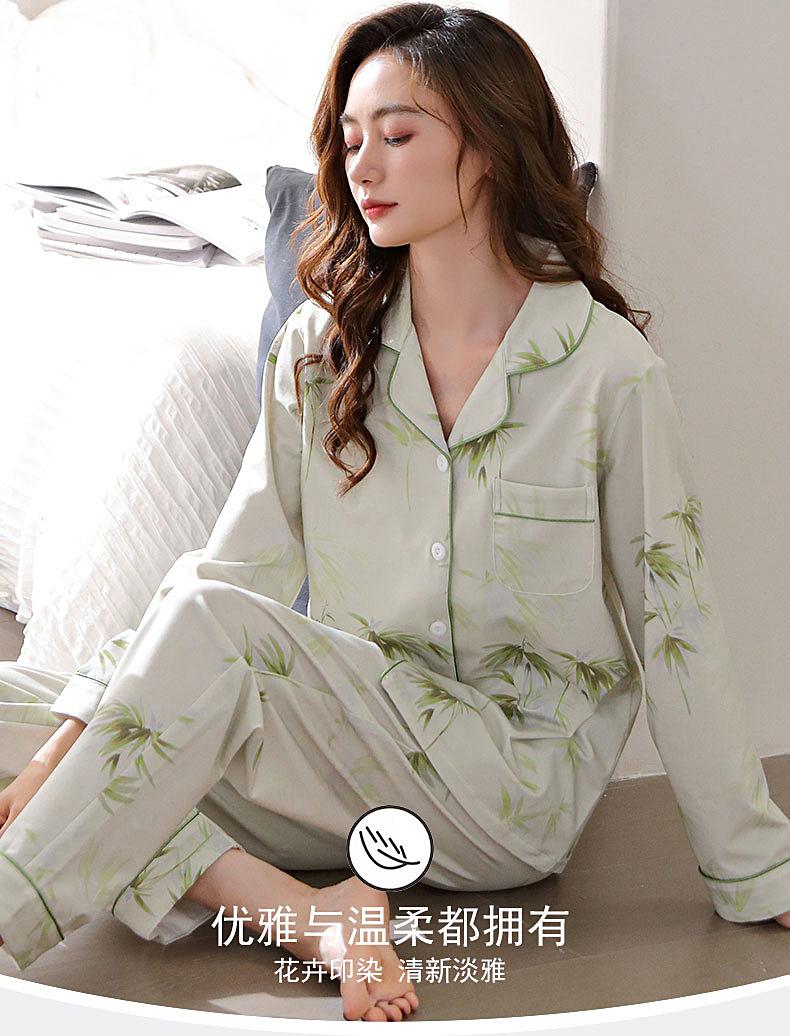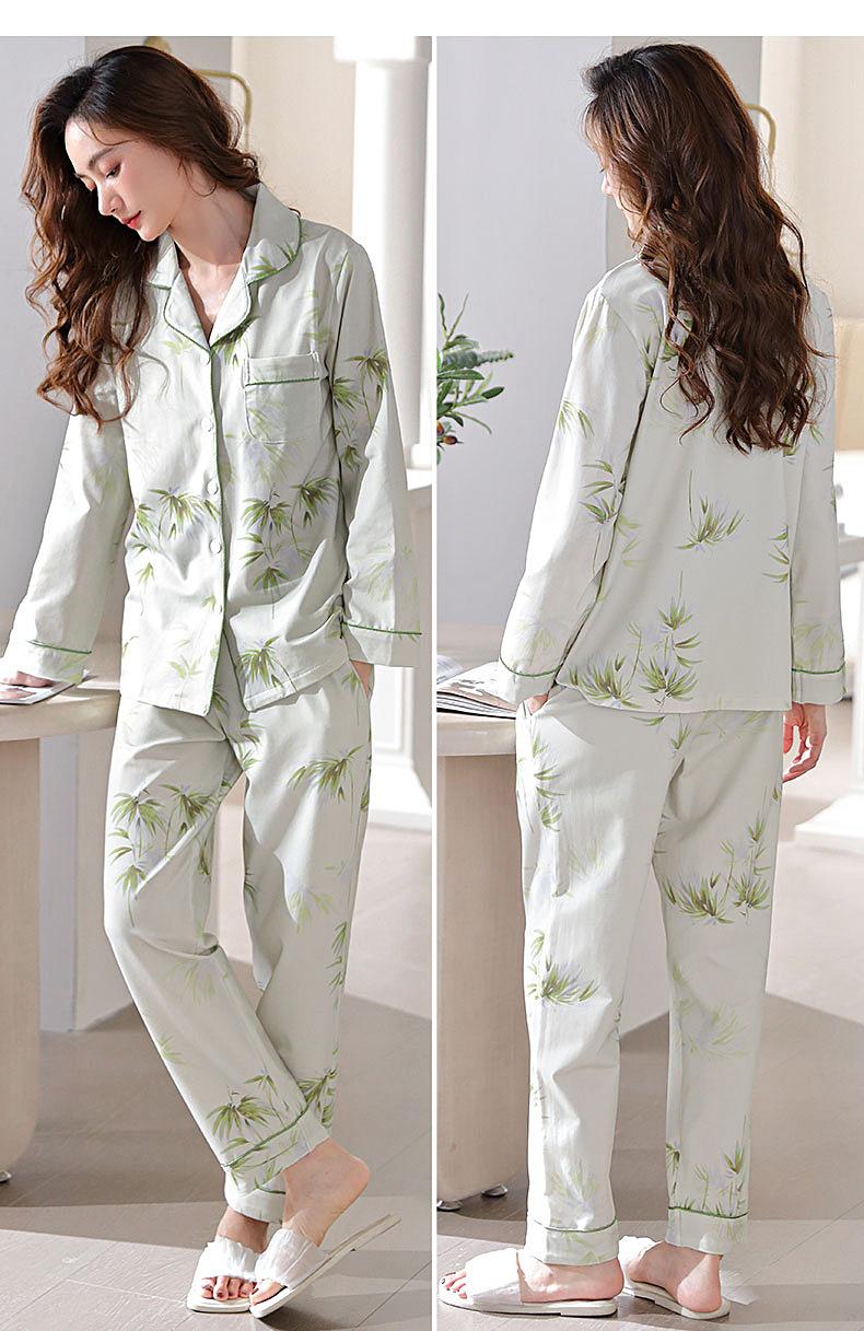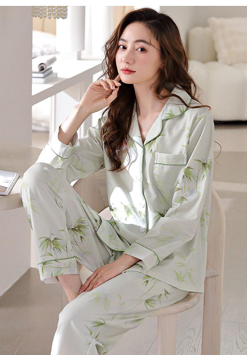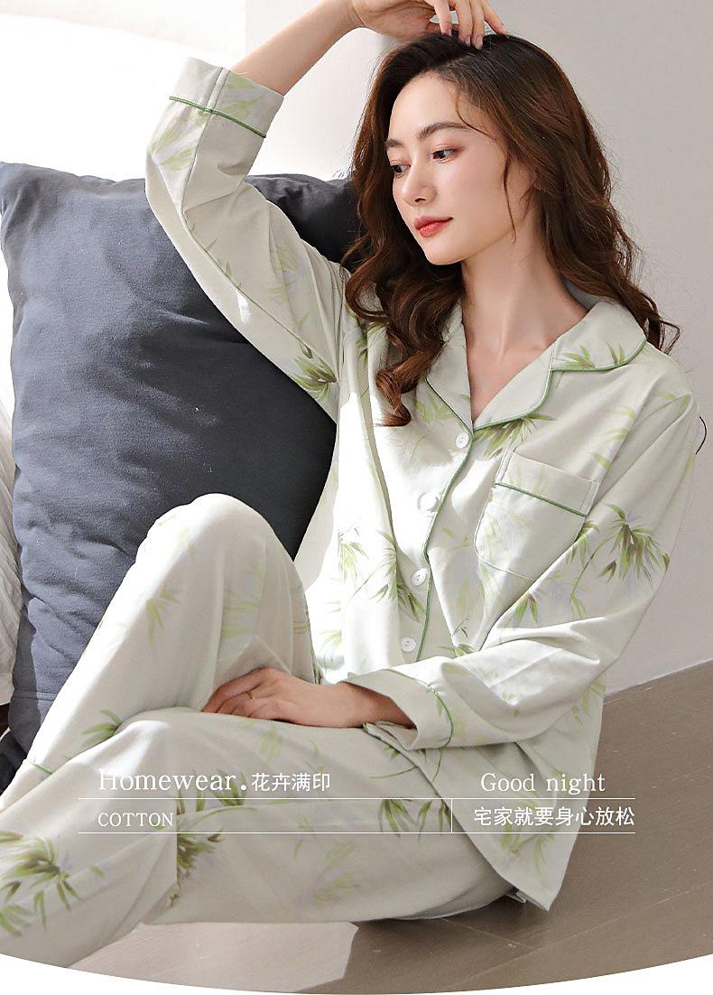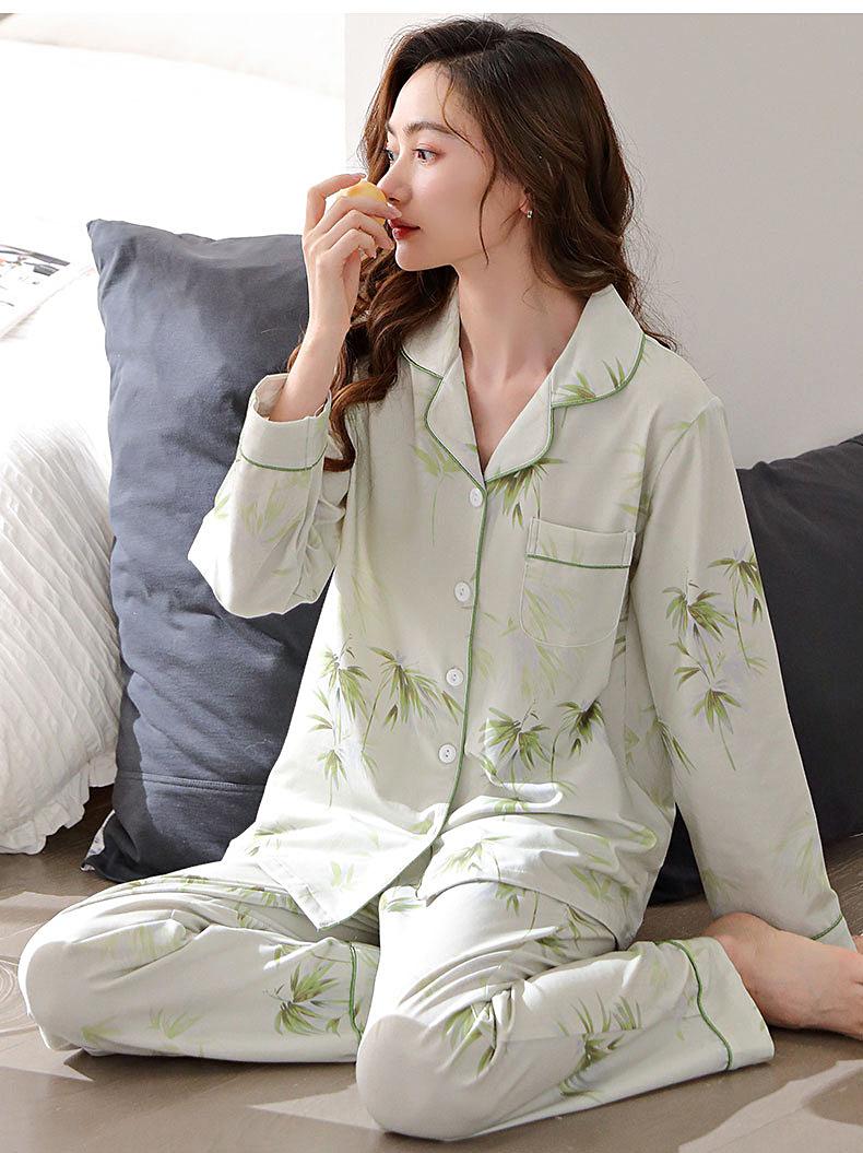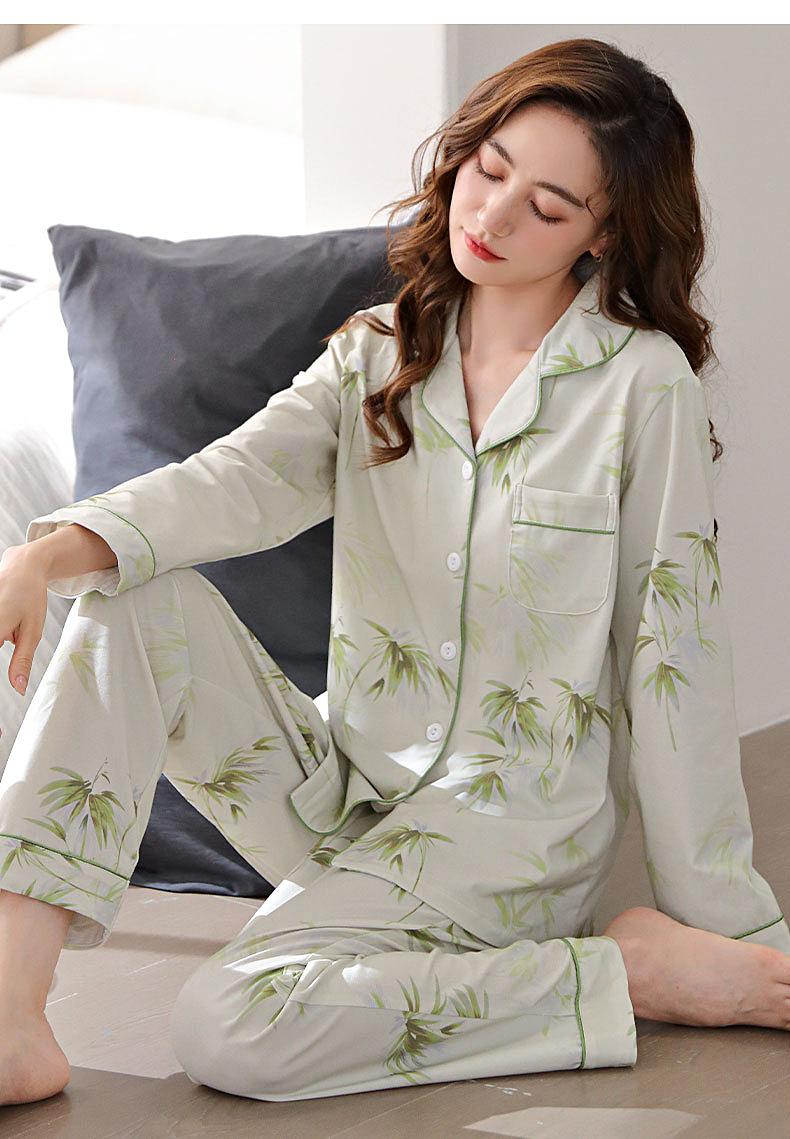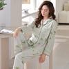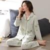 Pijamas Mulheres Pure Cotton Primavera e Outono manga comprida Cardigan Set casual estampado fino respirável ao ar livre roupas domésticas para a juventude