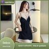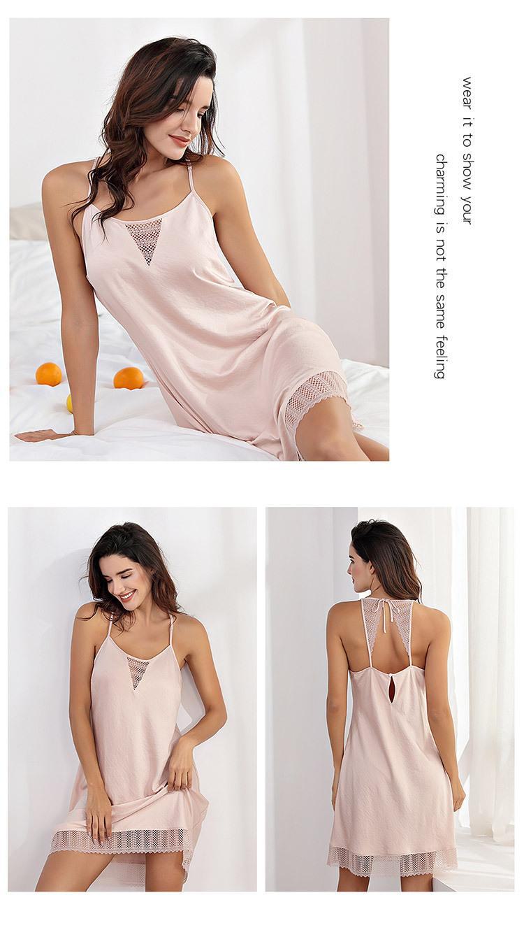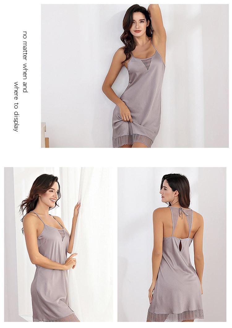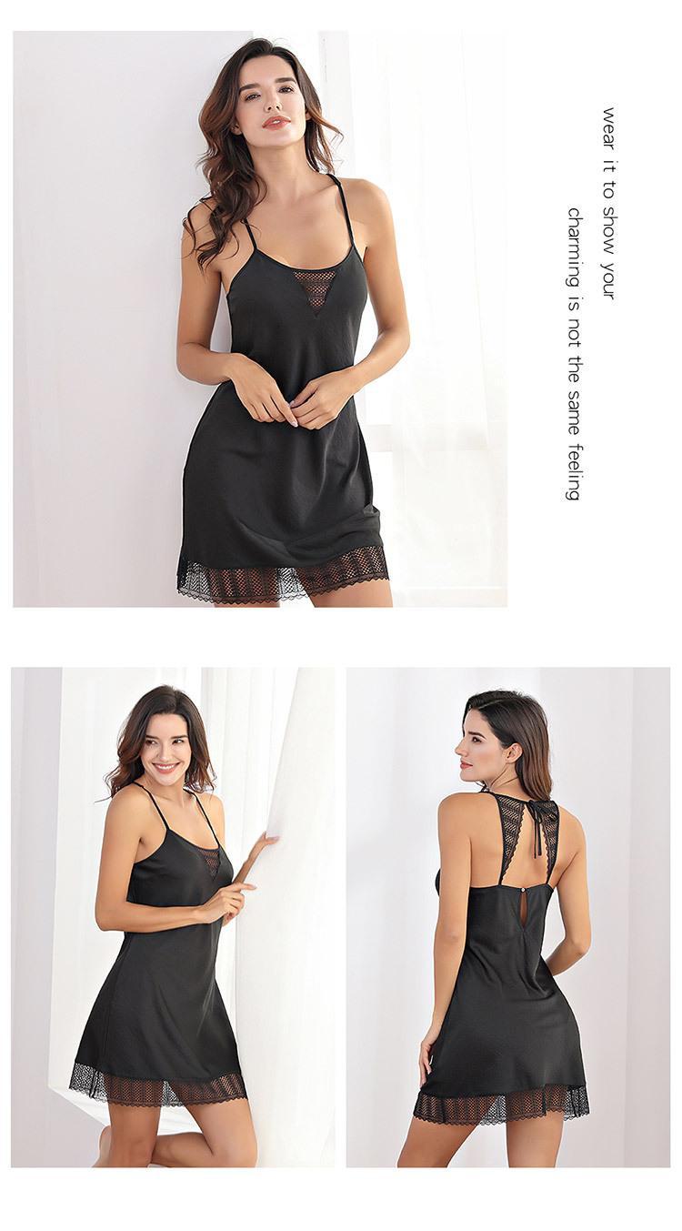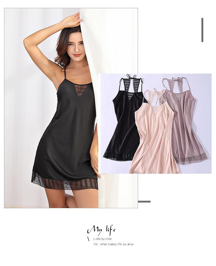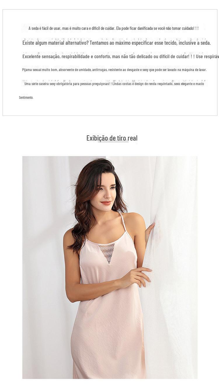Vestido Camisola de Renda com Textura de Cetim para Mulheres, Adequado para Usar em Casa, Casualmente, como Roupa de Dormir ou como um Vestido Slip de Renda Sexy