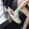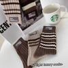 Meias marrons meias femininas de comprimento médio da panturrilha na moda all-match de alta aparência Mori outono e inverno estilo japonês grosso listrado meias