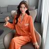 Pijamas Primavera e Outono Gelo Seda Duas peças Set Mulheres Outono de mangas compridas Lapela fina Ameixa Jacquard Outwear Roupas para casa
