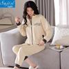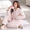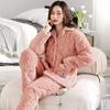 Inverno três camadas acolchoado pijamas quentes mulheres manga comprida espessado coral fleece moda casual cor sólida home wear terno